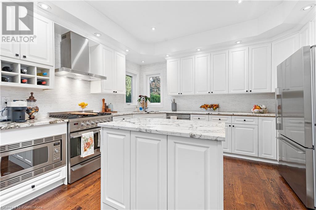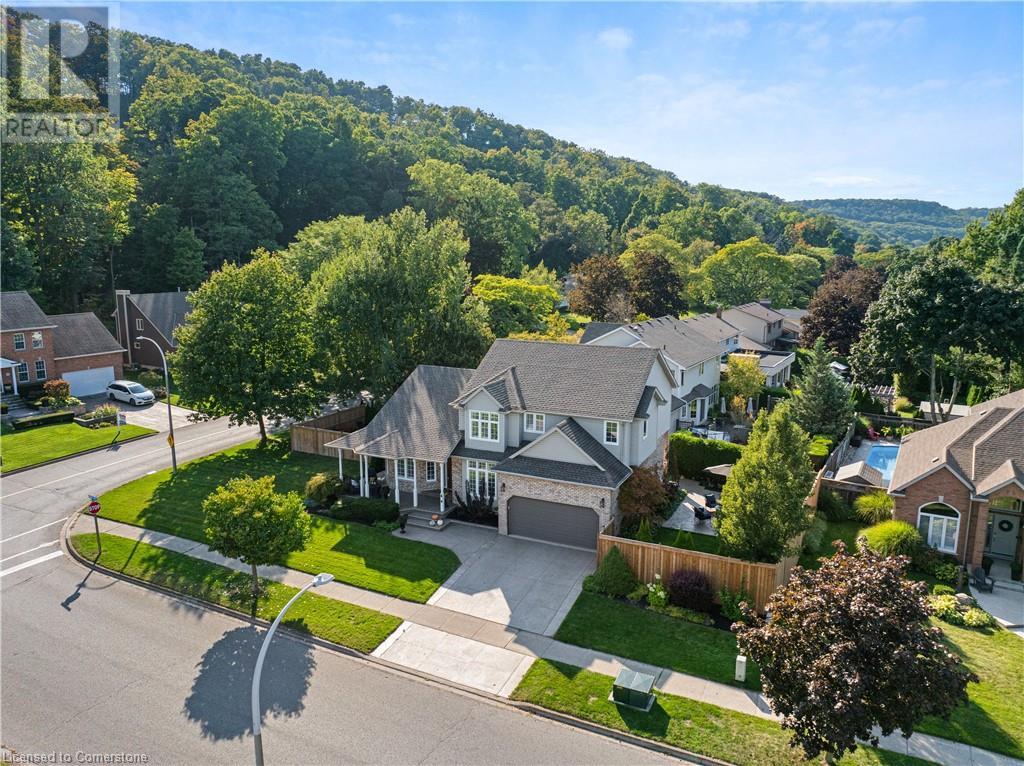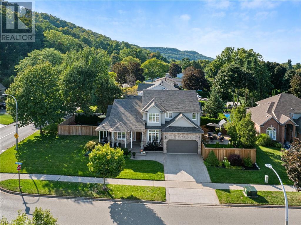 ESCARPMENT VIEWS & LUXURY LIVING!! MUST-SEE GRIMSBY HOME! Step onto the charming wrap-around front porch and take in the breathtaking escarpment views that will steal your heart! This incredible home offers two distinct yard spaces, each with its own stunning view, creating the perfect outdoor escape. The beautifully manicured lot has underground sprinklers and is filled with mature landscaping, offering lush spaces perfect for relaxing or entertaining. Love the outdoors? Enjoy picturesque escarpment walks down winding roads in this vibrant and active neighbourhood. Inside, this fully finished home is designed with luxury in mind. Soaring 2 storey vaulted ceilings, built-in cabinetry, and a floor-to-ceiling stone fireplace provide warmth and elegance. The custom kitchen is a true showpiece, ideal for both daily living and hosting gatherings. With 4+1 spacious bedrooms and 4 elegant bathrooms, this home ensures your family has all the space and comfort they need. Surrounded by award winning wineries and restaurants, multiple schools, parks and lake front vibes, this is the dream location you’ve been waiting for! QEW access is quick and easy, this extraordinary Grimsby home won’t last long. (id:55009)