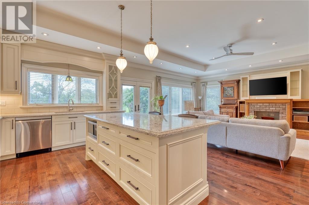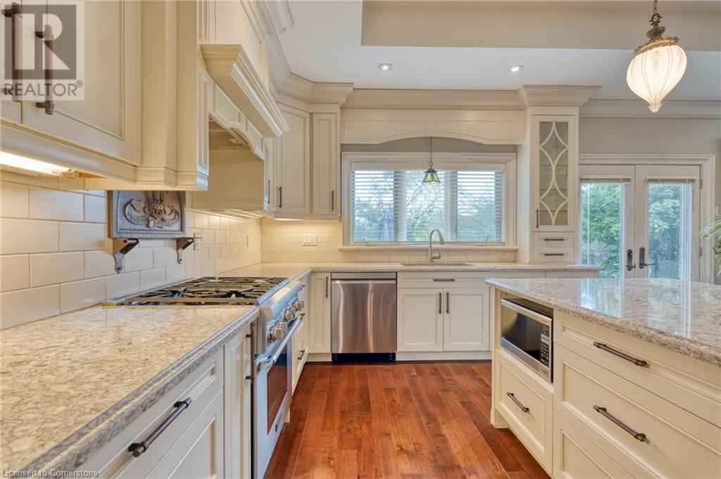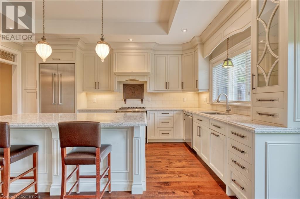 Welcome to 90 Pleasant Avenue! This stunning 2,513 sqft plus an additional 1,800 sqft in the basement of finished living space is an absolute must-see. Enjoy your stunning oversized backyard backing onto Colqhoun Park features 3 Sheds, beautiful landscaping, and located on one of the best streets on the West Mountain. Starting from the 4-car attached Garage, custom kitchen with high-end Thermador Fridge and Stove with a massive granite island and hardwood floors throughout this home is ready to entertain and host with a beautiful dining room, and great room space. This Bungalow features 4 Bedrooms on the main floor included is a stunning primary retreat with an oversized ensuite bathroom and views of the park from your rear windows. All bedrooms are large with generous-sized closets and a bonus of two full bedrooms in the basement. 90 Pleasant Avenue features so much detail including stained glass transoms, solid doors, solid wood large trim, and 9ft ceiling throughout main floor then vaulted to 10ft ceilings in the great room. The basement features a huge rec room, ground level entry, 4pc bathroom, finished living room, and a workout space with custom rubber flooring. RSA. (id:55009)