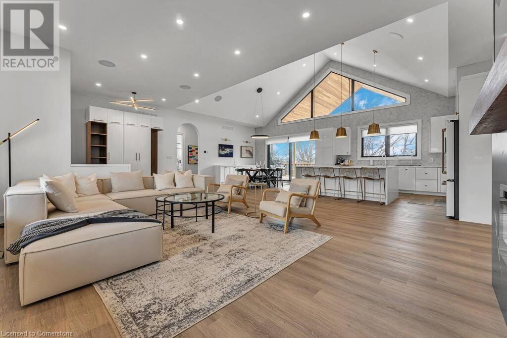Welcome to your dream home in Port Colborne just moments from the shores of Lake Erie. This stunning 3+1 bedroom, 3.5 plus 1 bath Bungaloft offers an exceptional blend of luxury, comfort & investment opportunity. Step into the open living area, where a chef's kitchen awaits, complete with top-of-the-line appliances and ample counter apace. The expansive living and dining area boasts cathedral ceilings, creating an airy and inviting atmosphere. The main floor features three spacious bedrooms, including a master bath adorned in marble with brass finishing, complemented by his and hers walk-in closets. The thoughtfully designed laundry/mudroom includes a convenient dog wash station or a place to wash sand off your feet after a day at the beach. Upstairs, the loft serves as a versatile space, perfect for an extra bedroom with its own 2-piece bath. The basement offers even more living space with a full 3-piece bath and a large recreation room. Outdoor living is a delight with an inground salt water pool surrounded by elevated landscaping and a hot tub built into the extra-large covered back porch-perfect for relaxation and entertaining. An added bonus is the 1200 sqft accessory building, ideal for hosting friends and family or generating rental income. It features an eat-in kitchen, a spacious open living area, a 3-piece bathroom, and a large bedroom area on the second floor with a sun-deck. Don't miss the opportunity to own this exquisite home and Air BnB Beast. (id:55009)