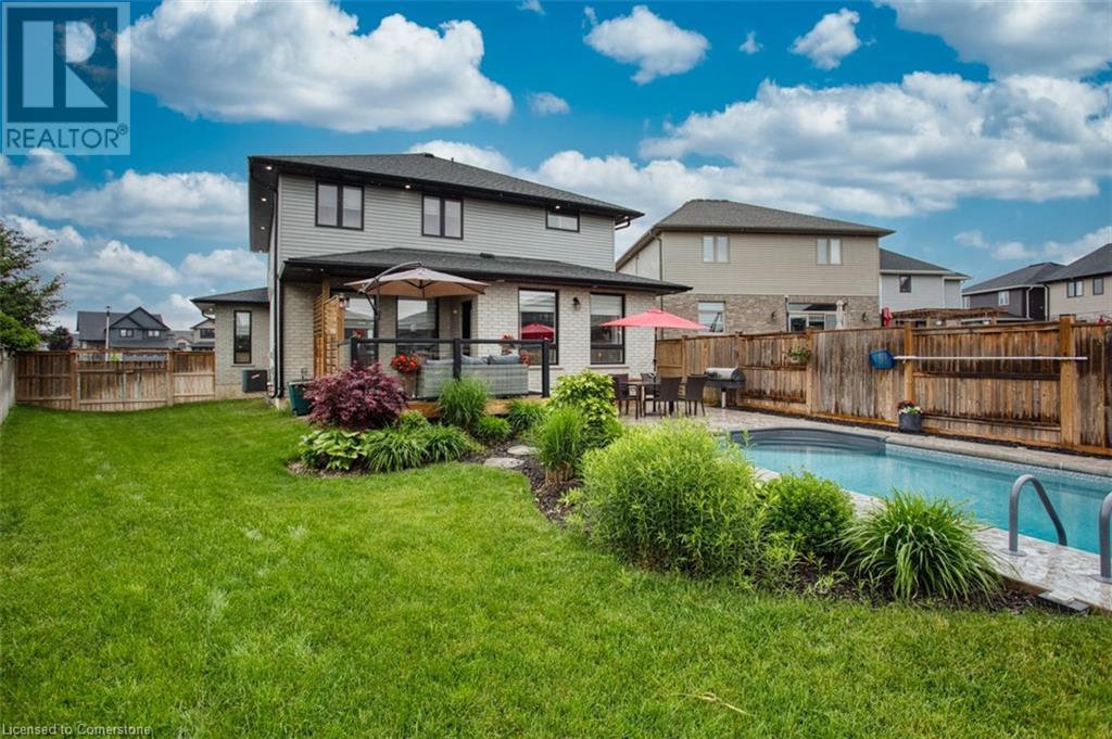 ENJOY HOT SUMMER NIGHTS AND HOT SUMMER DAYS IN YOUR BACKYARD OASIS Welcome to this beautiful modern custom built Goodman home on a quiet cul de sac. Curb appeal Plus, notice the beauty of this home as you drive up. Kitchen is a cooks dream complete with walk-in pantry as well as butlers pantry. Custom cabinets with quartz countertop. The mud room is a generous size with a main floor laundry room. The upper level is stunning with four large bedrooms and two bathrooms. Wait till you see the ensuite off the primary bedroom and the large walk-in closet with custom shelving. The basement is finished with a full bathroom. Step onto the deck from the kitchen and picture yourself enjoying the in-ground pool. Salt water pool is heated and there is even a sprinkler system. Other surprises await you as you view this home. Do not miss the opportunity to own this desirable home. (id:55009)
