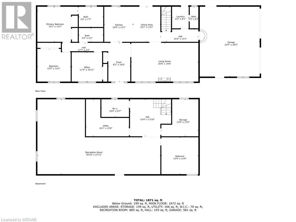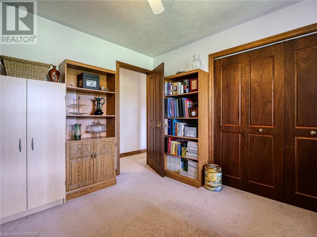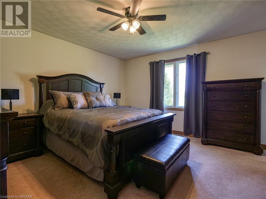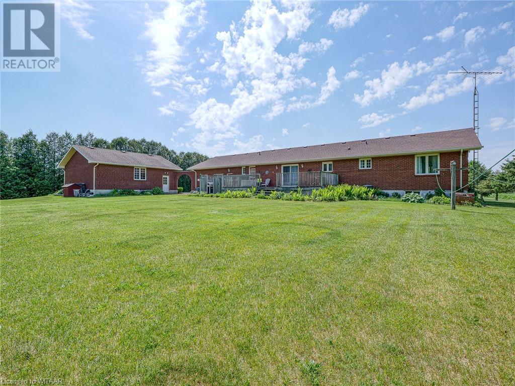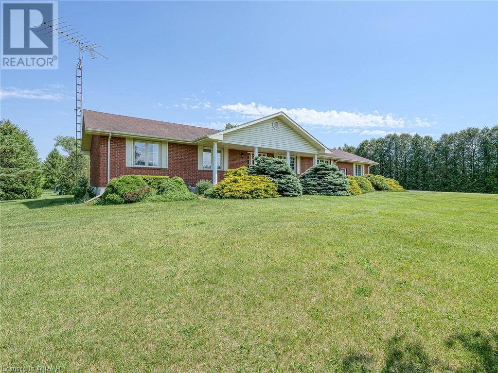 Introducing this stunning all-brick ranch style home, first time on the market and perfectly nestled on a serene 44.98 acre lot with 27 acres workable, 10 acres of bush, and an expansive 4-acre yard surrounded by picturesque fields and trees. This pristine property offers a generous 2703 sq ft of living space both above and below grade, featuring 3 well-appointed bedrooms, 3 bathrooms (including one roughed-in bathroom ready for personalization), and an office. The heart of the home boasts an oversized kitchen island with ample cupboard space, patio doors off the dining area and an electric fireplace in the living room for cozy evenings. The primary suite impresses with a 4-piece ensuite and dual closets. Entertainment is a breeze in the spacious recreation room, suitable for a pool table and a comfy TV area, alongside additional storage space and a large cold cellar. Exterior highlights include a covered front porch, a 26x23 ft attached 2-car garage, a 28x30 ft detached 2-car garage/workshop, and a fenced area for animals. Recent upgrades include a new water softener, hot water tank (2023), sewage pump, and recently pumped septic system (October 2023). With 40-year asphalt/fiberglass/mesh shingles (2008) and no need for a sump pump, this home is as practical as it is charming. Set against a backdrop of tranquility and privacy, don’t miss your chance to own this exquisite property. The land, having been last logged 27 years ago, also offers potential for future logging endeavors. Don't miss out on the opportunity to own this beautiful ranch style home with plenty of land! (id:55009)