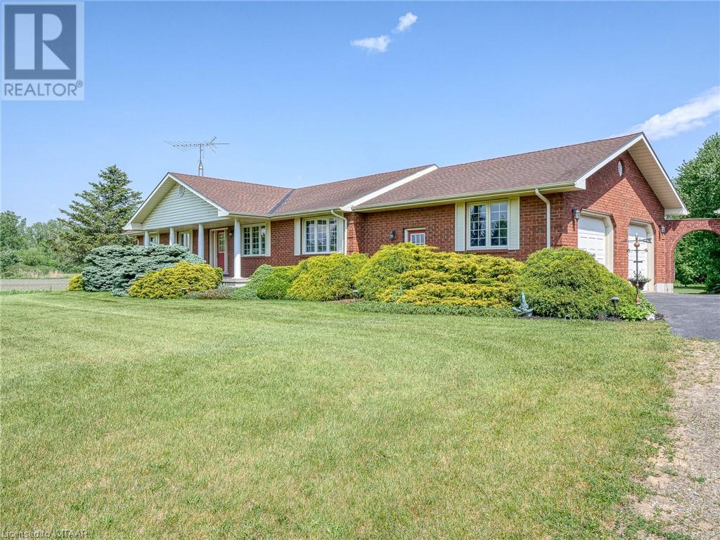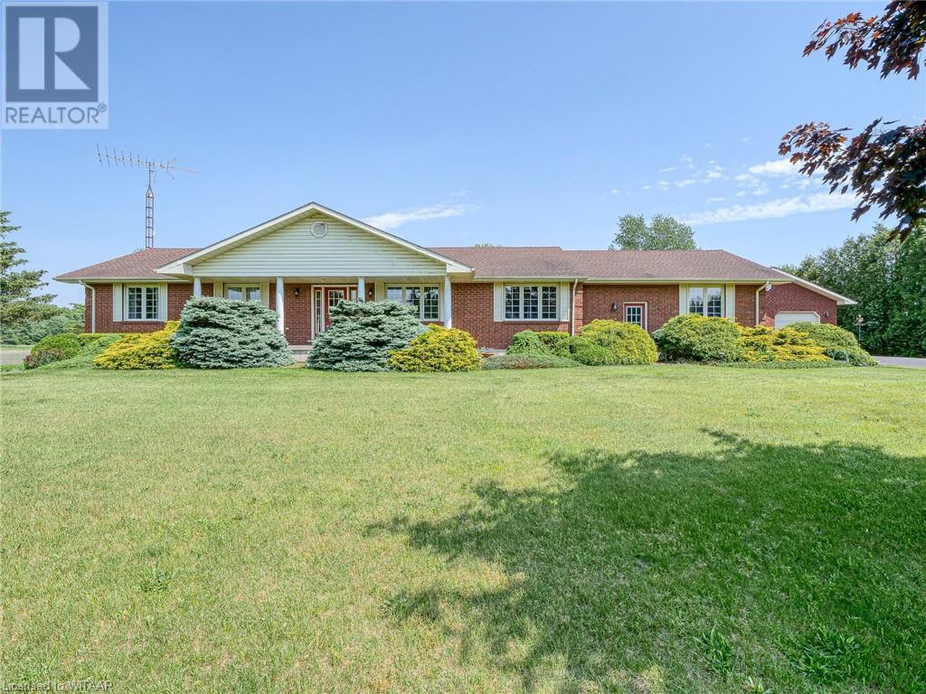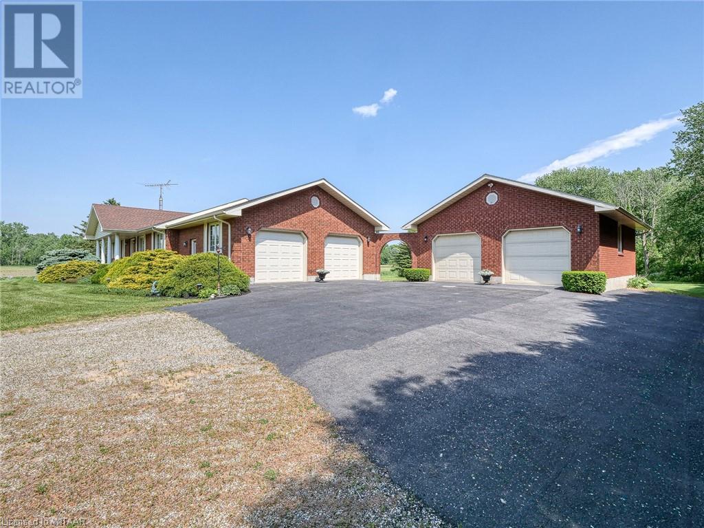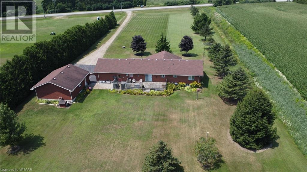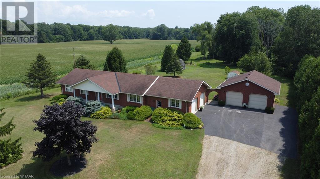 Introducing this stunning all-brick ranch style home, first time on the market and perfectly nestled on a serene 44.98 acre lot with 27 acres workable, 10 acres of bush, and an expansive 4-acre yard surrounded by picturesque fields and trees. This pristine property offers a generous 2703 sq ft of living space both above and below grade, featuring 3 well-appointed bedrooms, 3 bathrooms (including one roughed-in bathroom ready for personalization), and an office. The heart of the home boasts an oversized kitchen island with ample cupboard space, patio doors off the dining area and an electric fireplace in the living room for cozy evenings. The primary suite impresses with a 4-piece ensuite and dual closets. Entertainment is a breeze in the spacious recreation room, suitable for a pool table and a comfy TV area, alongside additional storage space and a large cold cellar. Exterior highlights include a covered front porch, a 26x23 ft attached 2-car garage, a 28x30 ft detached 2-car garage/workshop, and a fenced area for animals. Recent upgrades include a new water softener, hot water tank (2023), sewage pump, and recently pumped septic system (October 2023). With 40-year asphalt/fiberglass/mesh shingles (2008) and no need for a sump pump, this home is as practical as it is charming. Set against a backdrop of tranquility and privacy, don’t miss your chance to own this exquisite property. The land, having been last logged 27 years ago, also offers potential for future logging endeavors. Don't miss out on the opportunity to own this beautiful ranch style home with plenty of land! (id:55009)