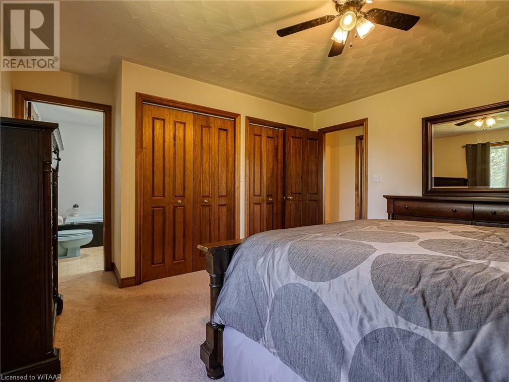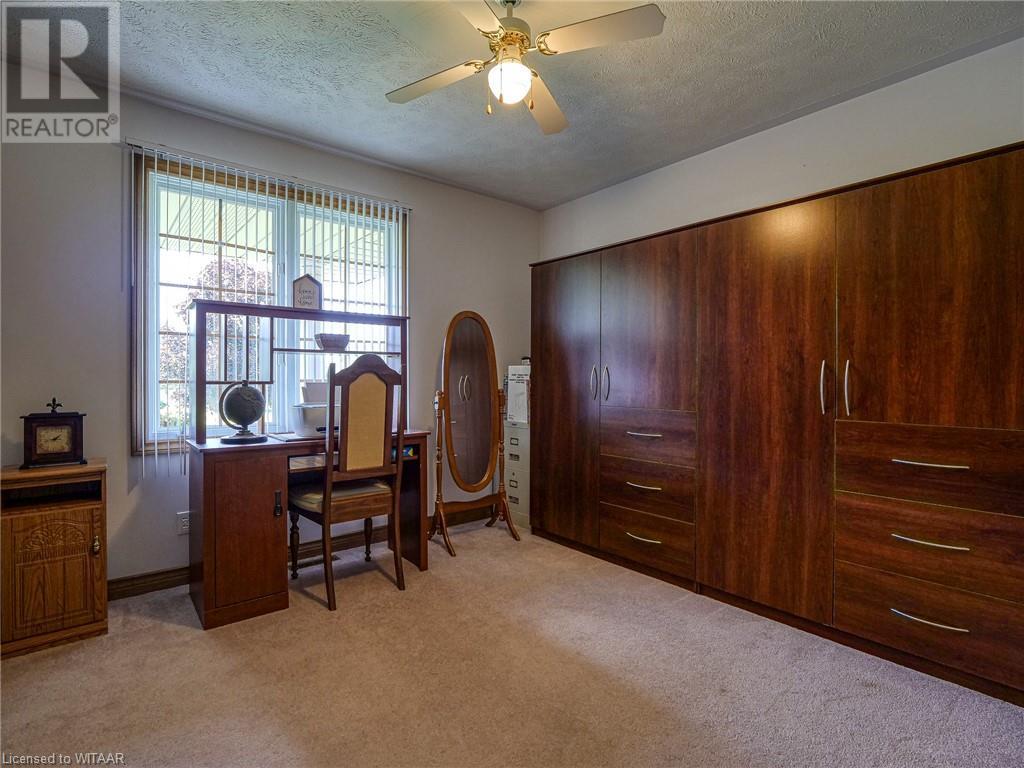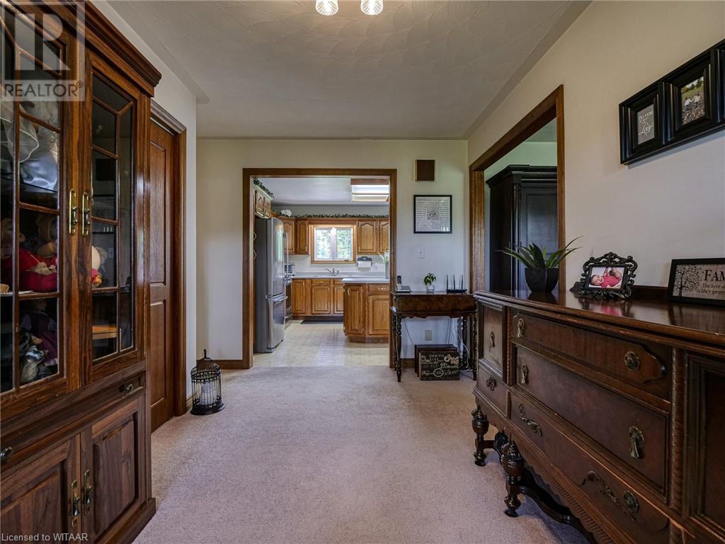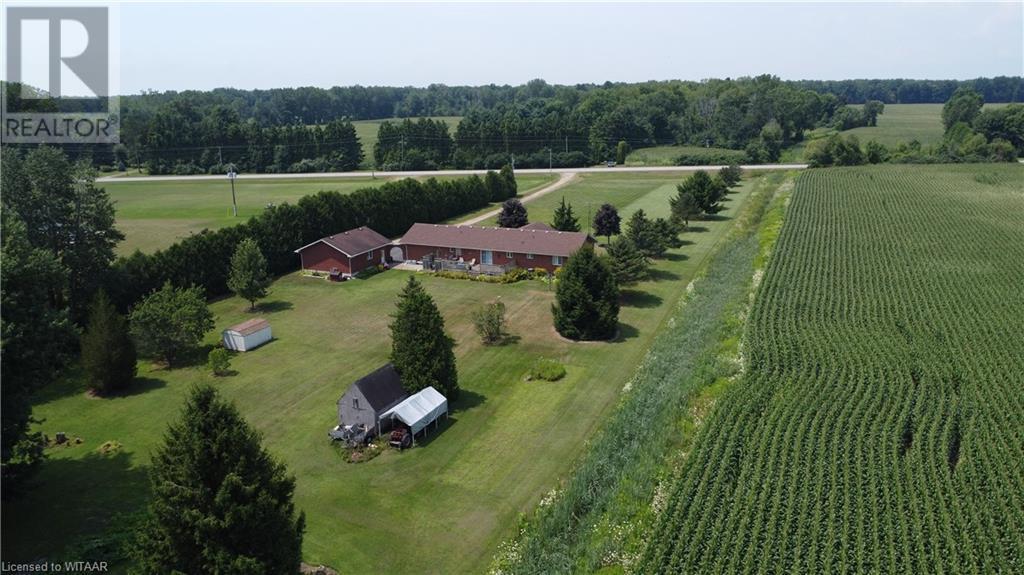 Introducing this stunning all-brick ranch style home, first time on the market and perfectly nestled on a serene 44.98 acre lot with 27 acres workable, 10 acres of bush, and an expansive 4-acre yard surrounded by picturesque fields and trees. This pristine property offers a generous 2703 sq ft of living space both above and below grade, featuring 3 well-appointed bedrooms, 3 bathrooms (including one roughed-in bathroom ready for personalization), and an office. The heart of the home boasts an oversized kitchen island with ample cupboard space, patio doors off the dining area and an electric fireplace in the living room for cozy evenings. The primary suite impresses with a 4-piece ensuite and dual closets. Entertainment is a breeze in the spacious recreation room, suitable for a pool table and a comfy TV area, alongside additional storage space and a large cold cellar. Exterior highlights include a covered front porch, a 26x23 ft attached 2-car garage, a 28x30 ft detached 2-car garage/workshop, and a fenced area for animals. Recent upgrades include a new water softener, hot water tank (2023), sewage pump, and recently pumped septic system (October 2023). With 40-year asphalt/fiberglass/mesh shingles (2008) and no need for a sump pump, this home is as practical as it is charming. Set against a backdrop of tranquility and privacy, don’t miss your chance to own this exquisite property. The land, having been last logged 27 years ago, also offers potential for future logging endeavors. Don't miss out on the opportunity to own this beautiful ranch style home with plenty of land! (id:55009)