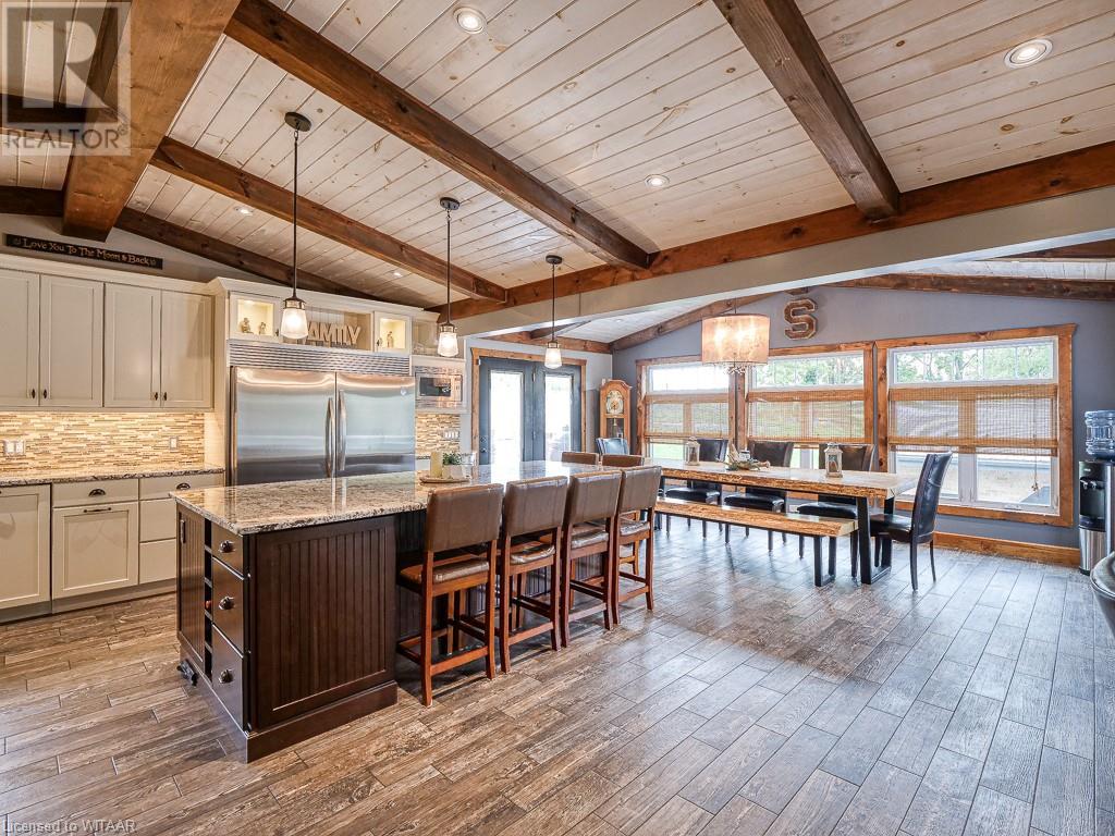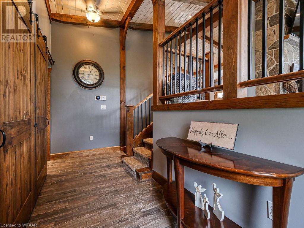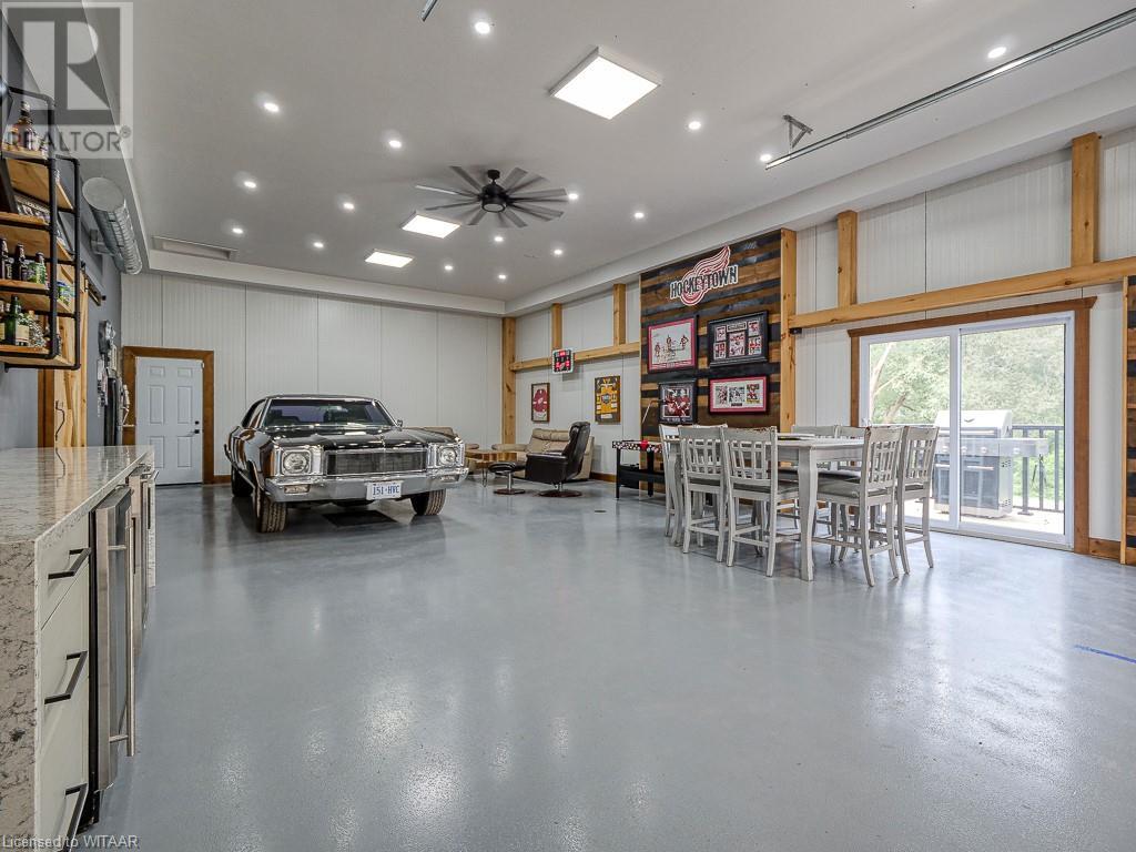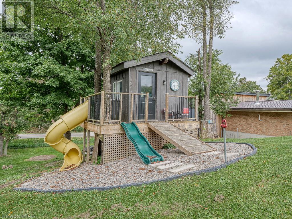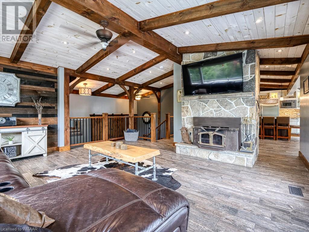 NOW ON SALE! Introducing the home you've been waiting for! Step into your Dream Home situated on a tranquil lot spanning just over an acre outside of Embro. This remarkable property has everything you could ever desire. Upon entry, you'll be greeted by the rustic modern ambiance, featuring white washed ceilings and stained beams. The expansive kitchen is perfect for family gatherings, boasting a large island, side by side fridge and freezer, walk-in pantry, dining area with picturesque views, and more. The Family Room is highlighted by a wood burning fireplace encased in stone, leading to one of many outdoor seating areas. The main level offers three generously sized bedrooms, one with a convenient 2-piece ensuite, as well as a 4-piece bathroom. Down a few steps to the walk-out level, you'll find a luxurious private primary suite, complete with another stunning fireplace and a 3-piece ensuite. This level also features a recently updated Mudroom with laundry and an additional 3-piece washroom. Journey down a few more steps to discover a charming playroom for little ones and a cozy media room for family movie nights. But wait, there's more! Outside, you'll find an oversized detached heated garage with double doors, along with a fully finished heated entertainment room, perfect for the ultimate Man Cave experience, complete with its own BBQ area and Glass feature Garage Door! Additionally, there's a charming tree house/bunkie equipped with bunk beds, wifi, an electric fireplace, and TV. The meticulously landscaped yard offers multiple relaxation areas, a fire-pit, a hot tub, and breathtaking views of trees and fields. With ample parking for up to 10 vehicles, this home truly has it all. Words cannot fully capture its true, unique beauty – this is a MUST SEE property! (id:55009)