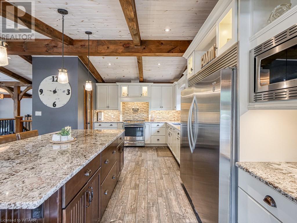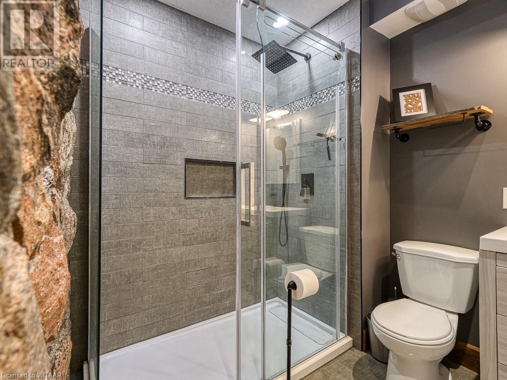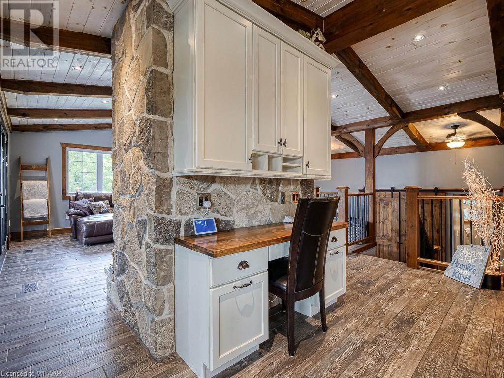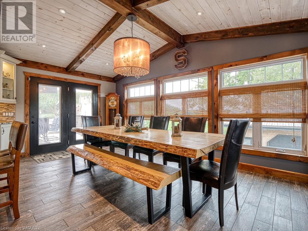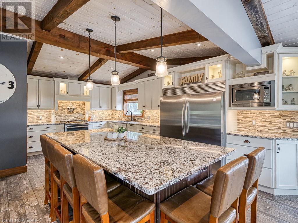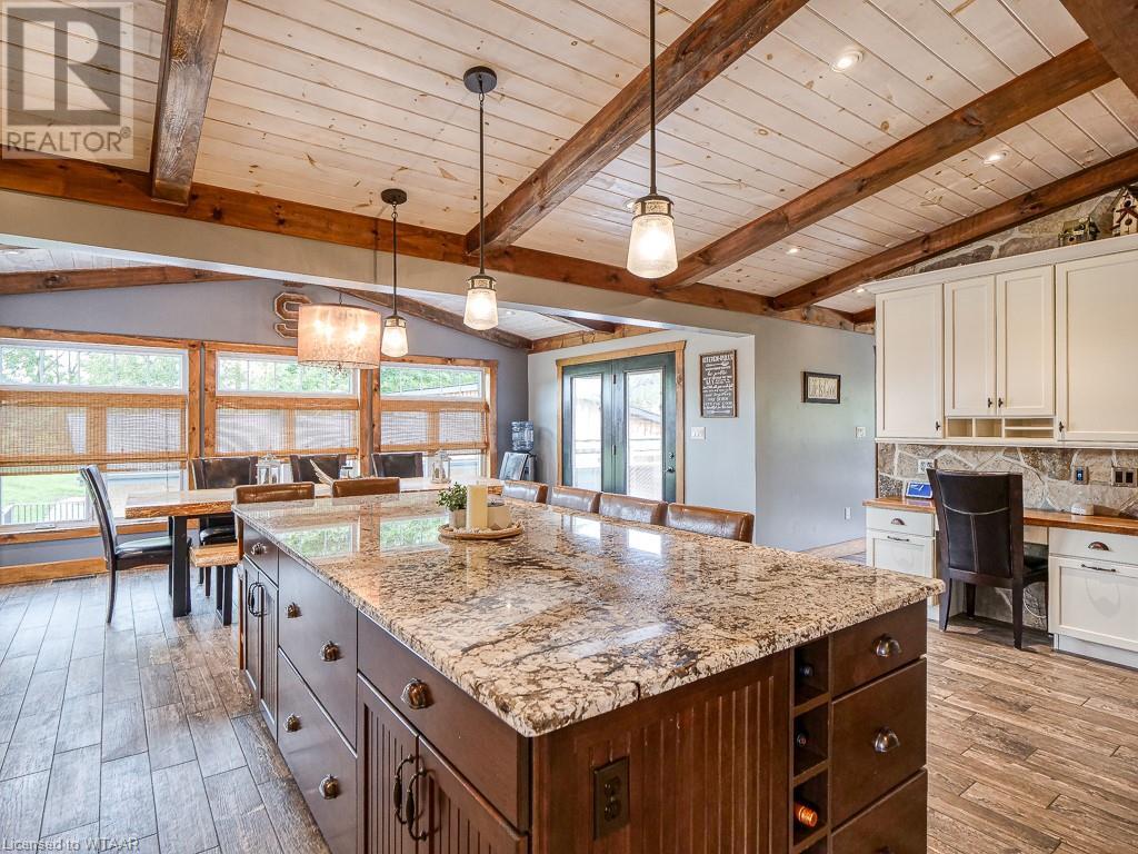 NOW ON SALE! Introducing the home you've been waiting for! Step into your Dream Home situated on a tranquil lot spanning just over an acre outside of Embro. This remarkable property has everything you could ever desire. Upon entry, you'll be greeted by the rustic modern ambiance, featuring white washed ceilings and stained beams. The expansive kitchen is perfect for family gatherings, boasting a large island, side by side fridge and freezer, walk-in pantry, dining area with picturesque views, and more. The Family Room is highlighted by a wood burning fireplace encased in stone, leading to one of many outdoor seating areas. The main level offers three generously sized bedrooms, one with a convenient 2-piece ensuite, as well as a 4-piece bathroom. Down a few steps to the walk-out level, you'll find a luxurious private primary suite, complete with another stunning fireplace and a 3-piece ensuite. This level also features a recently updated Mudroom with laundry and an additional 3-piece washroom. Journey down a few more steps to discover a charming playroom for little ones and a cozy media room for family movie nights. But wait, there's more! Outside, you'll find an oversized detached heated garage with double doors, along with a fully finished heated entertainment room, perfect for the ultimate Man Cave experience, complete with its own BBQ area and Glass feature Garage Door! Additionally, there's a charming tree house/bunkie equipped with bunk beds, wifi, an electric fireplace, and TV. The meticulously landscaped yard offers multiple relaxation areas, a fire-pit, a hot tub, and breathtaking views of trees and fields. With ample parking for up to 10 vehicles, this home truly has it all. Words cannot fully capture its true, unique beauty – this is a MUST SEE property! (id:55009)