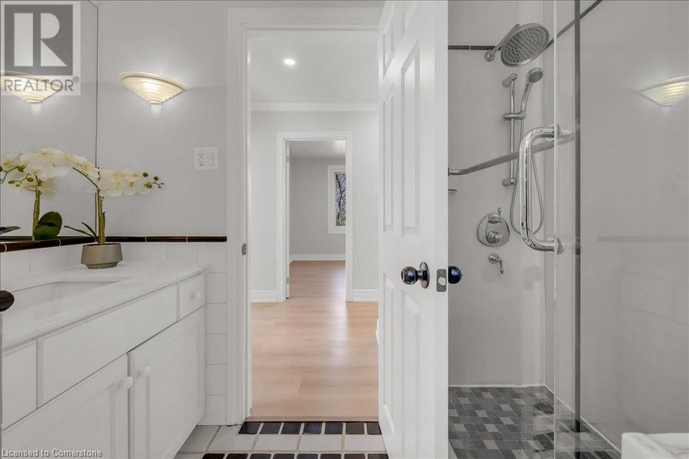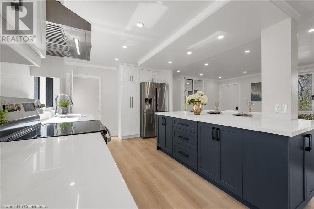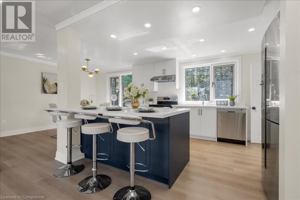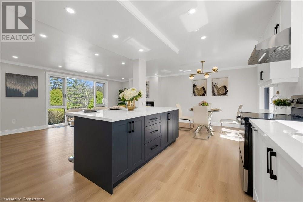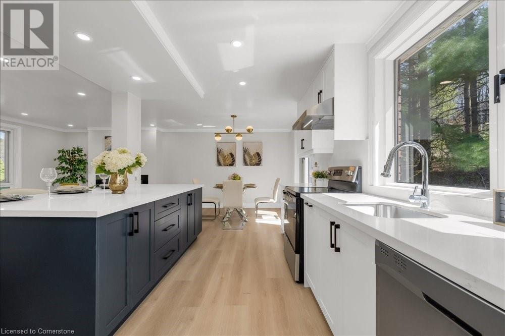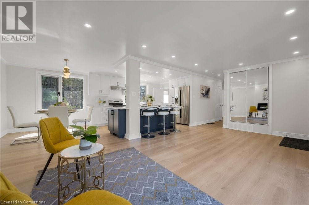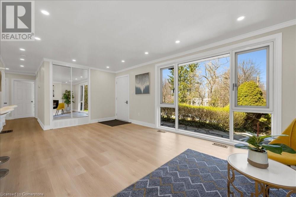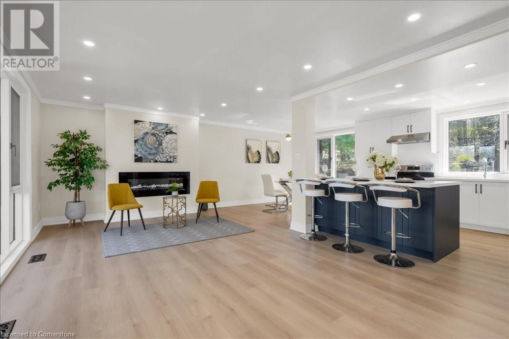 Rare Opportunity! Fully Renovated Bungalow in Prestigious Ancaster Heights! Surrounded by multi-million-dollar homes and offering over 2,000 sqft of living space with breathtaking views of the Tiffany Falls Conservation Area. Step inside to an inviting open-concept main floor, where the living and kitchen areas are bathed in natural light streaming through large windows that perfectly frame the picturesque surroundings. The modern kitchen featuring a spacious center island and breakfast bar. Wake up to the soothing sounds of birdsong and flowing waterfalls in any of the three spacious bedrooms, each showcasing newly installed large windows with stunning views of nature. The fully finished basement, accessible via a separate entrance, offers a generous living area, a laundry room, and a rough-in kitchen—ideal for a potential in-law suite. The basement also includes three additional bedrooms, one of which features its own private ensuite bathroom. Beyond the tranquility of this retreat, explore the charming village of Ancaster, filled with historic buildings, boutique shops, and exquisite dining options. Despite its serene setting, this property offers convenient access to major highways and all the amenities, including McMaster University, golf clubs, and a variety of shopping destinations from Costco to HomeSense. This property is a perfect blend of natural serenity and urban convenience, with numerous upgrades including newly paved driveway, new windows. A must-see! (id:55009)