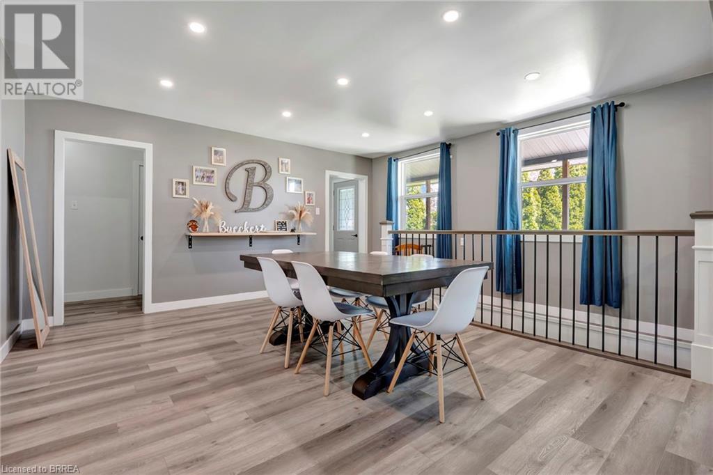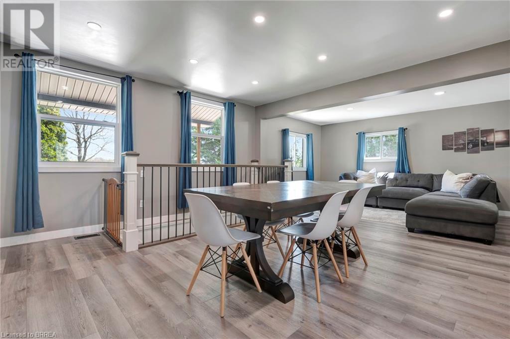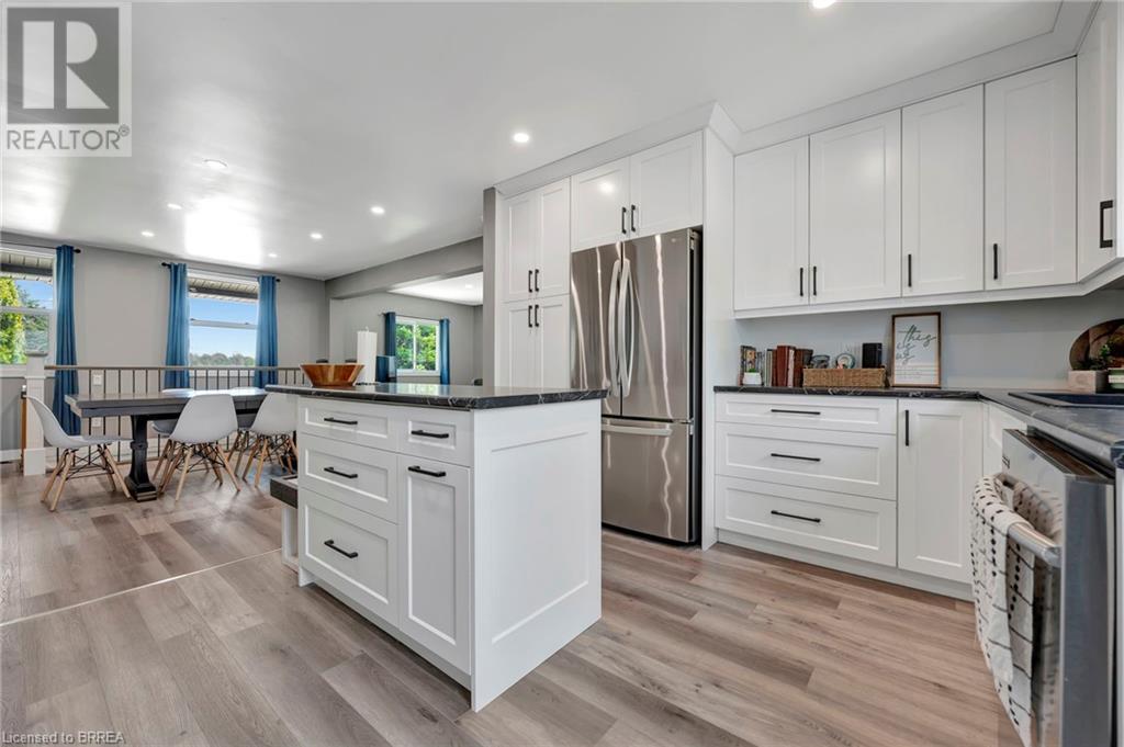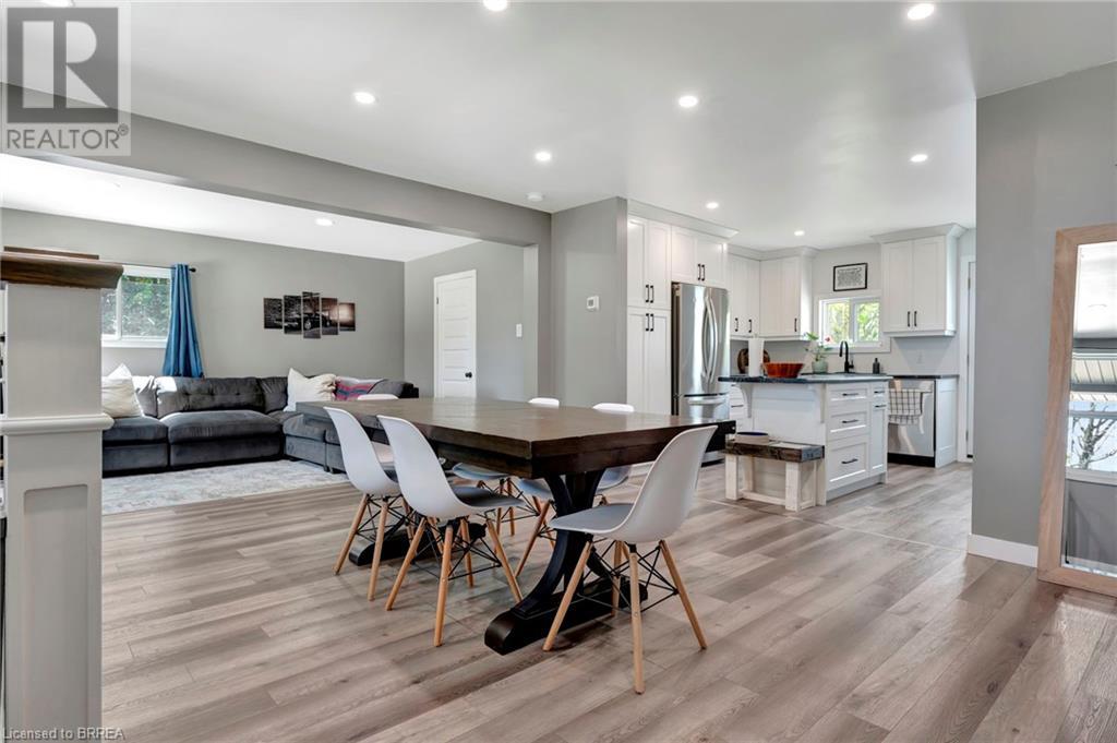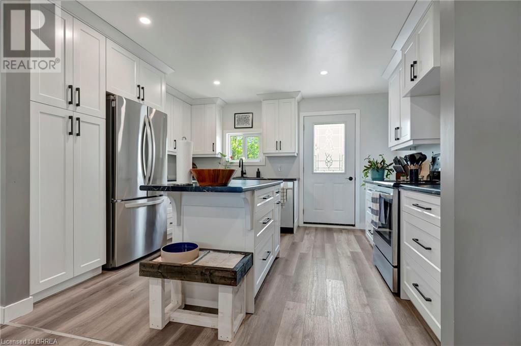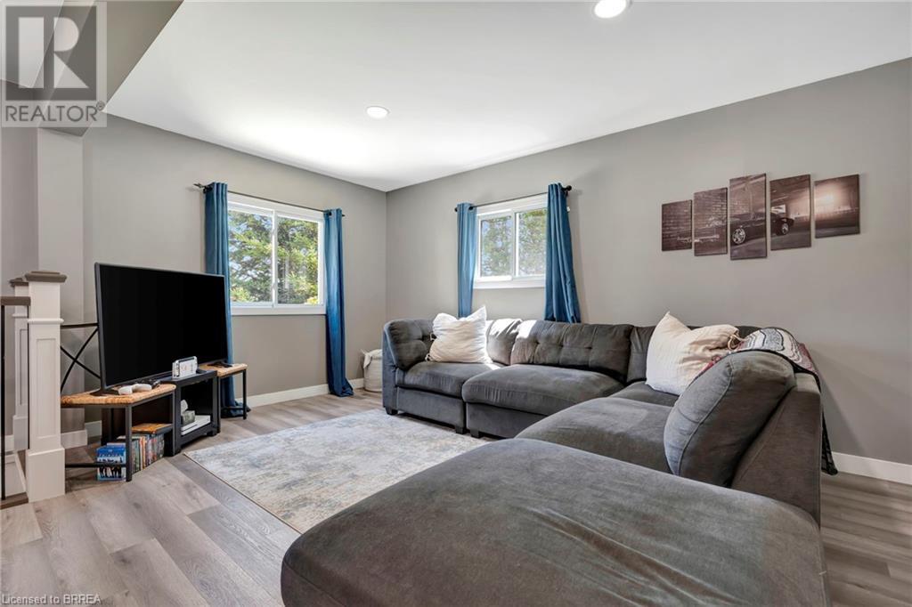 Welcome to this tranquil retreat on a picturesque tree-lined lot! This inviting home showcases a spacious double-wide concrete driveway leading to an welcoming front porch. Step inside to an open-concept floor plan that seamlessly blends the family room with the kitchen and dining room for the ideal space to gather and entertain. The kitchen offers a stylish island, cabinets that extend to the ceiling, and striking black accents contrasting against stainless steel appliances. Whether whipping up a gourmet meal or enjoying casual dining, this space caters to your every need in style. Three bedrooms on the main floor, along with a 4pc bathroom, offer comfort and convenience. Downstairs, two additional rooms provide versatile options for a home office, gym, or guest quarters, while an unfinished space invites your creative vision to bring it to life. Don't miss out on the perfect place to call home! (id:55009)