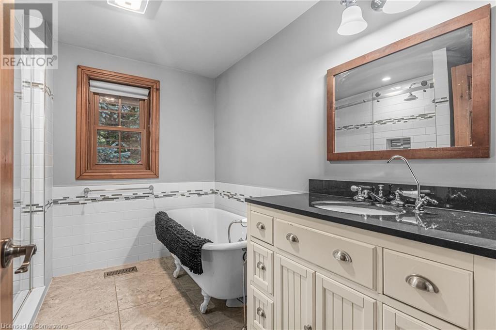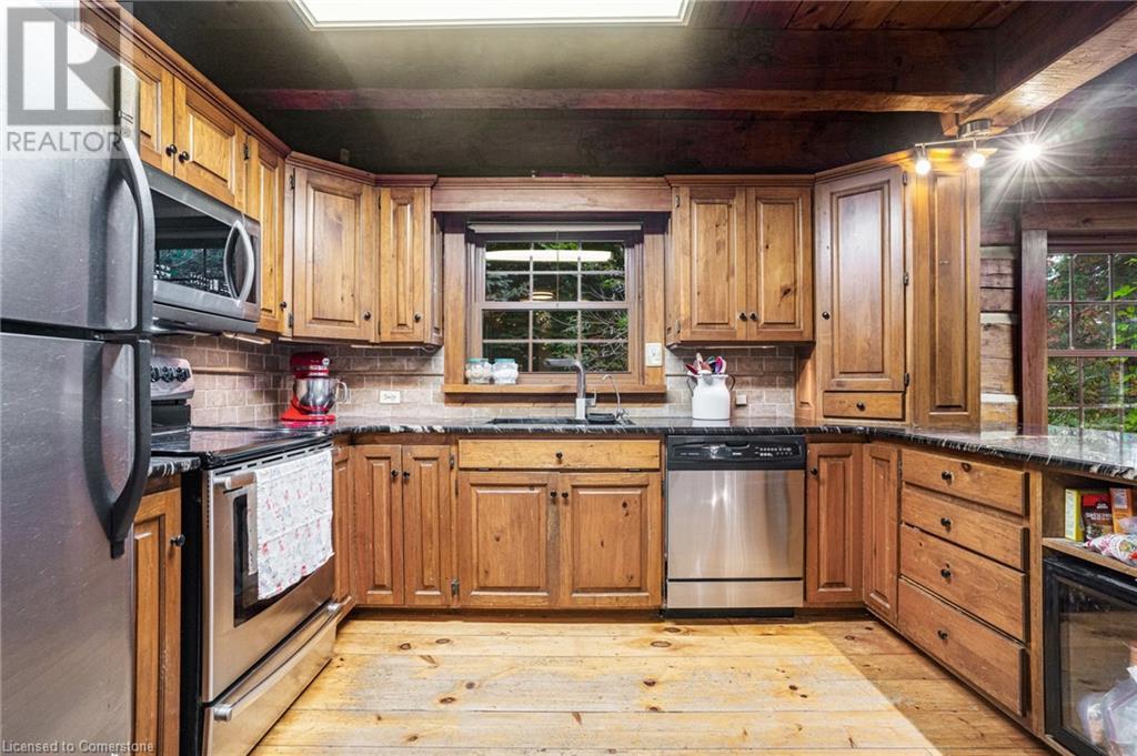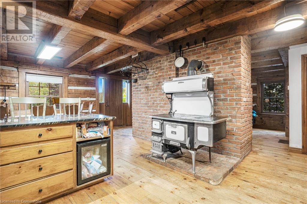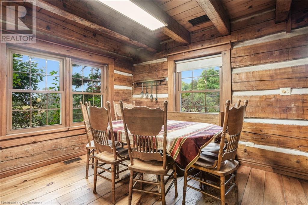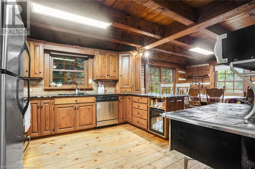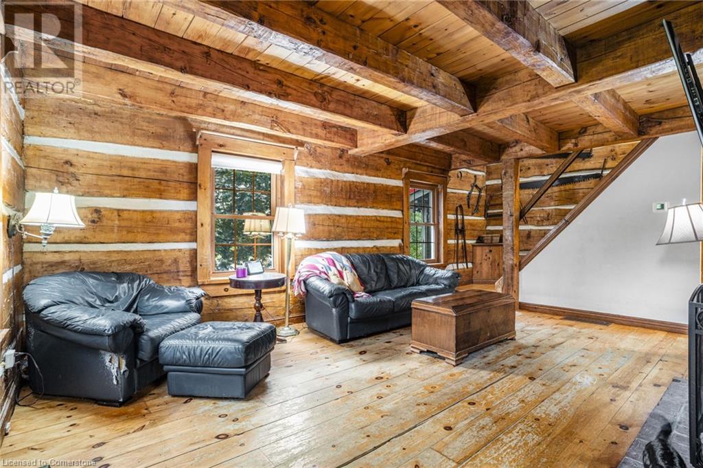 Discover your own slice of paradise at this breathtaking 37.36 acre country estate with two homes and approximately 30 acres of workable farmland! This exceptional property is located on a peaceful sideroad and offers a rare two home setup, making this an incredible opportunity for multi-generational living. The charming 2258 square foot “log cabin” home features 4 bedrooms, 2.5 bathrooms, a metal roof (new in 2019), and a poured concrete foundation with high ceilings, allowing amazing potential to add even more living space. Enjoy the warm main floor ambiance highlighted by exposed wood beams, an “Elmira” wood burning stove, granite countertops, and hardwood floors throughout. Heading upstairs, you’ll find 4 bedrooms and an office (potential for a 5th bedroom), including the primary bedroom with a 2-piece ensuite, and a large updated 4-piece bathroom. The second home, built in 2017, is a thoughtfully crafted 2 bedroom bungalow with soaring vaulted ceilings and modern finishes throughout. A true highlight of this home is the massive three bay garage with four doors! Enjoy your own main floor primary retreat, complete with a 4-piece ensuite with heated floors, a walk-in shower, and main floor laundry. With over 37 acres, two homes, a large shed, and an amazing private setting, this property offers endless possibilities for your dream lifestyle. Schedule your private viewing today! (id:55009)