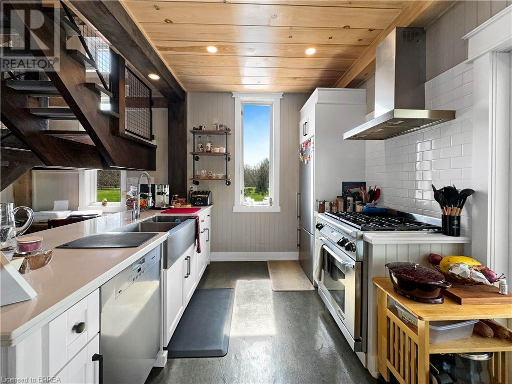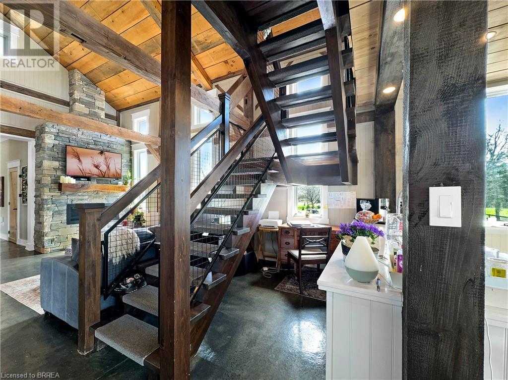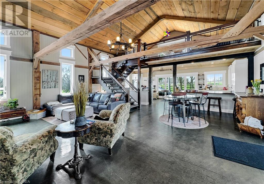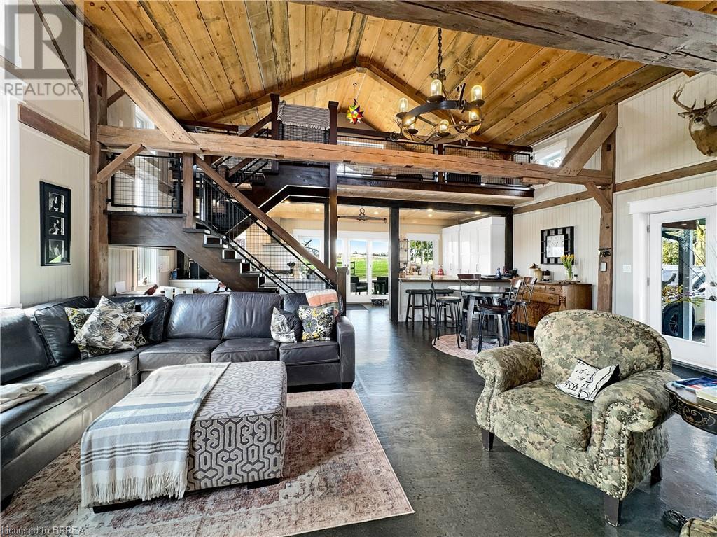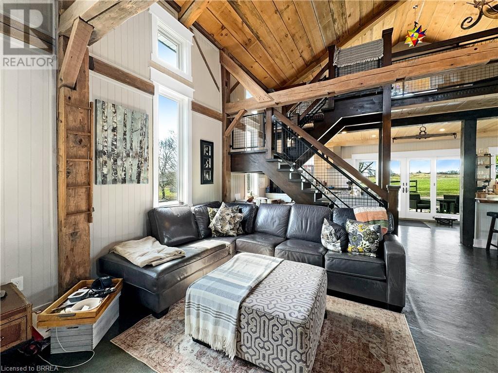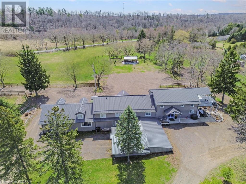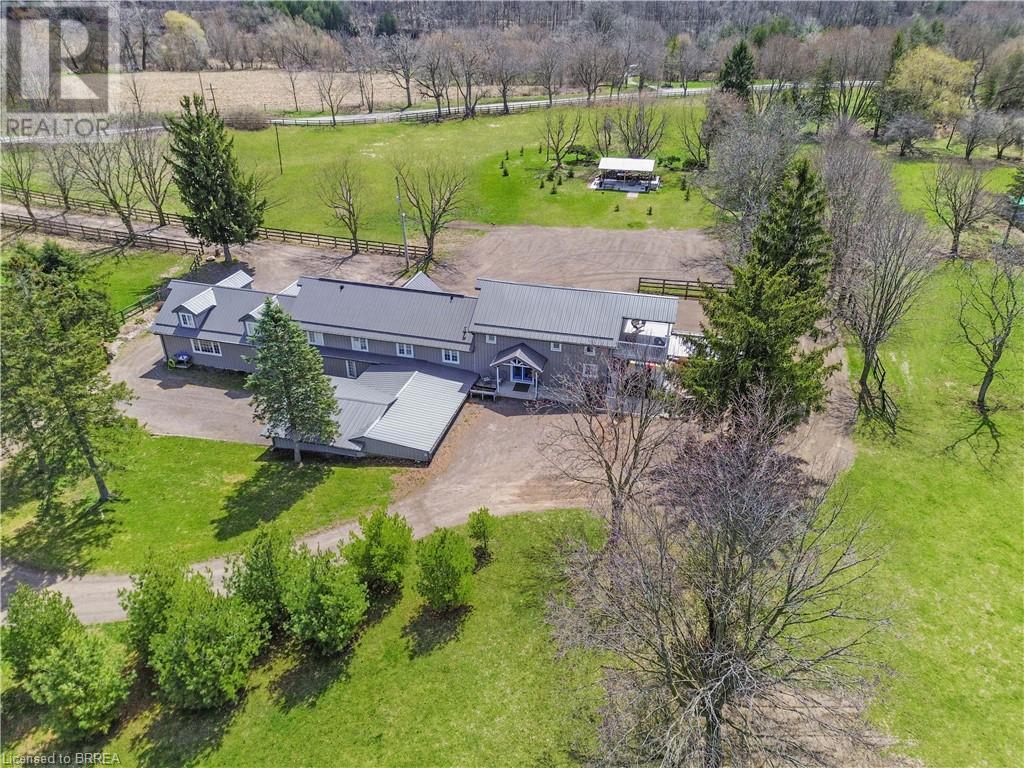 Welcome to your dream property. Are you tired of city life, do you have horses? Do you want horses? Do you have a home business? Do you want existing passive rental income? Do you have aspirations of becoming a builder? Developer? Or do you just want an unbelievable 16 acre country property steps from the Grand River and 5 minutes from downtown Paris. The building on this property is a converted bank barn that has been transformed into an outstanding commercial space composing of a hair salon, and several aesthetics treatment rooms, there are 2 other potential commercial spaces on the ground floor as well. This property also contains a stunning residence with original wood beams and details, look out over your property from the second floor balcony or enjoy your giant master suite. The land is just over 16 acres abutting directly up to the current development boundary of the town of Paris making future development definitely possibility for this property as well. (id:55009)