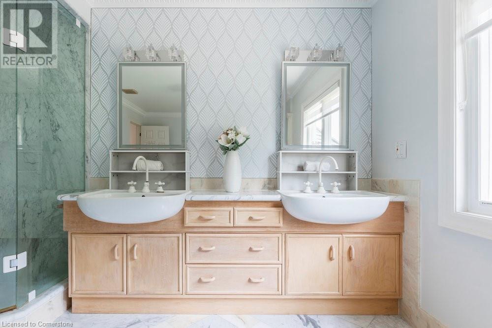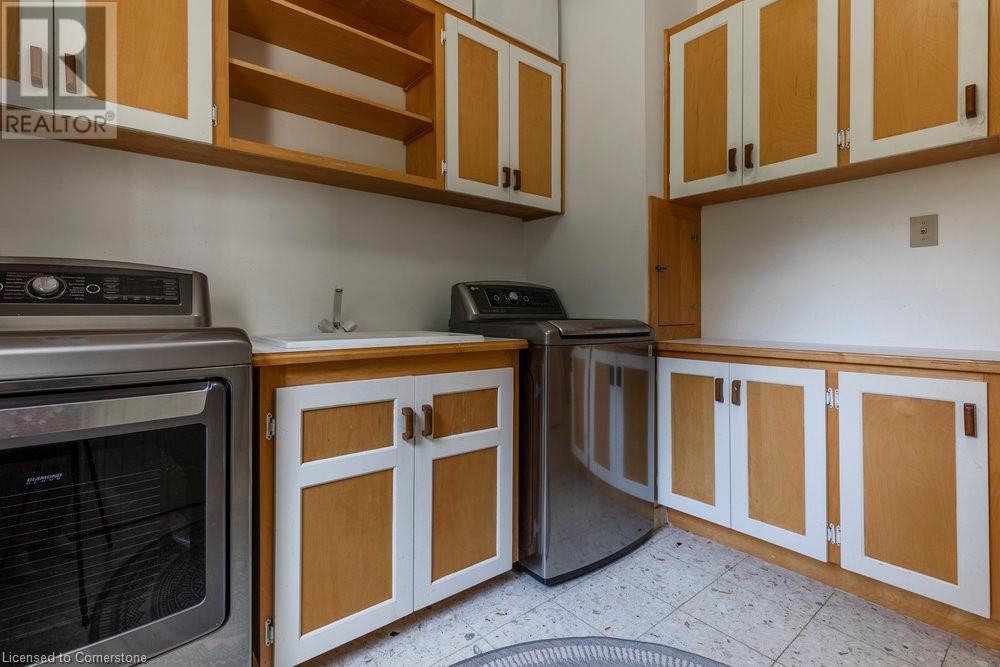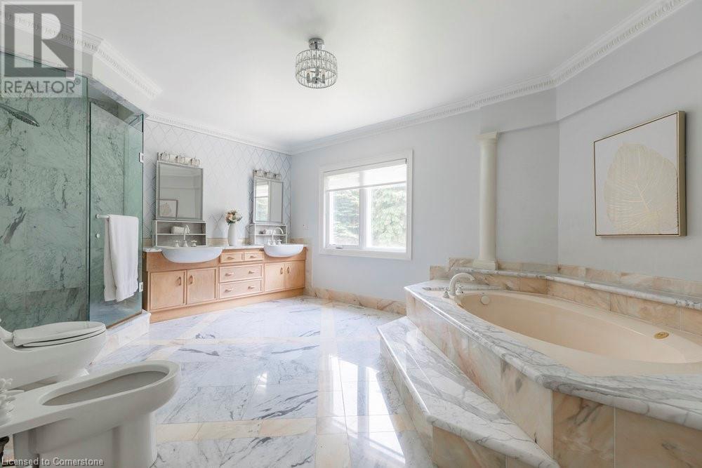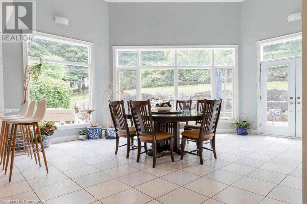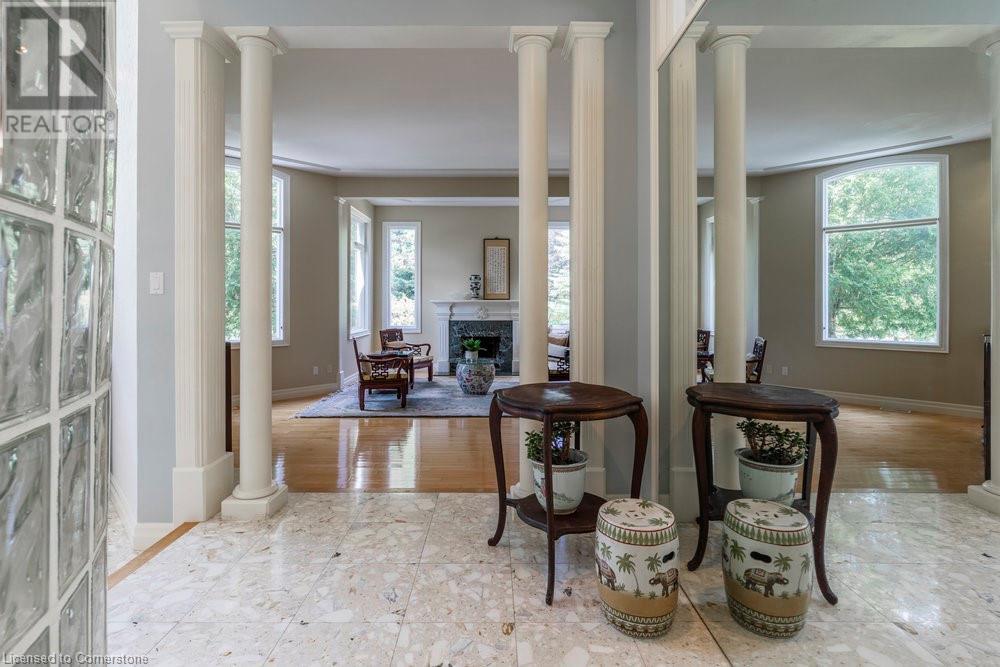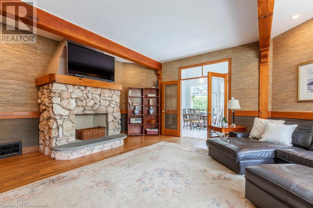 Welcome to 950 Old Mohawk Road, Ancaster, a spectacular property nestled at the end of an exclusive and private street of custom-built homes. This remarkable home is just steps away from the Iroquois Heights Conservation, offering access to the Bruce Trail, breathtaking waterfall views, and a leisurely stroll to the lower city of Hamilton. Despite its serene and secluded setting, the location provides swift access to highways and all the amenities Ancaster has to offer. This one-of-a-kind home is designed to accommodate large or multi-generational families with ease. Boasting over 7,000 square feet of living space spread across three finished floors, the home features vaulted ceilings and an abundance of windows that flood the interior with natural light. With six spacious bedrooms, two fully equipped kitchens, and multiple areas to gather or retreat, there is ample space for everyone. Situated on over 0.45 of an acre, the property is enveloped by tall, mature trees, enhancing its private and tranquil ambiance. Whether you're hosting family gatherings or seeking a peaceful sanctuary, this home provides the perfect setting for all occasions. Don't miss the opportunity to own this extraordinary residence in one of Ancaster's hidden treasure locations. (id:55009)