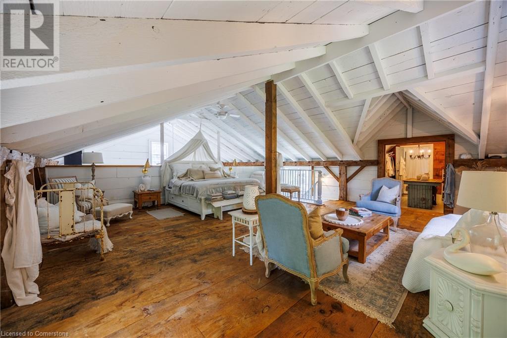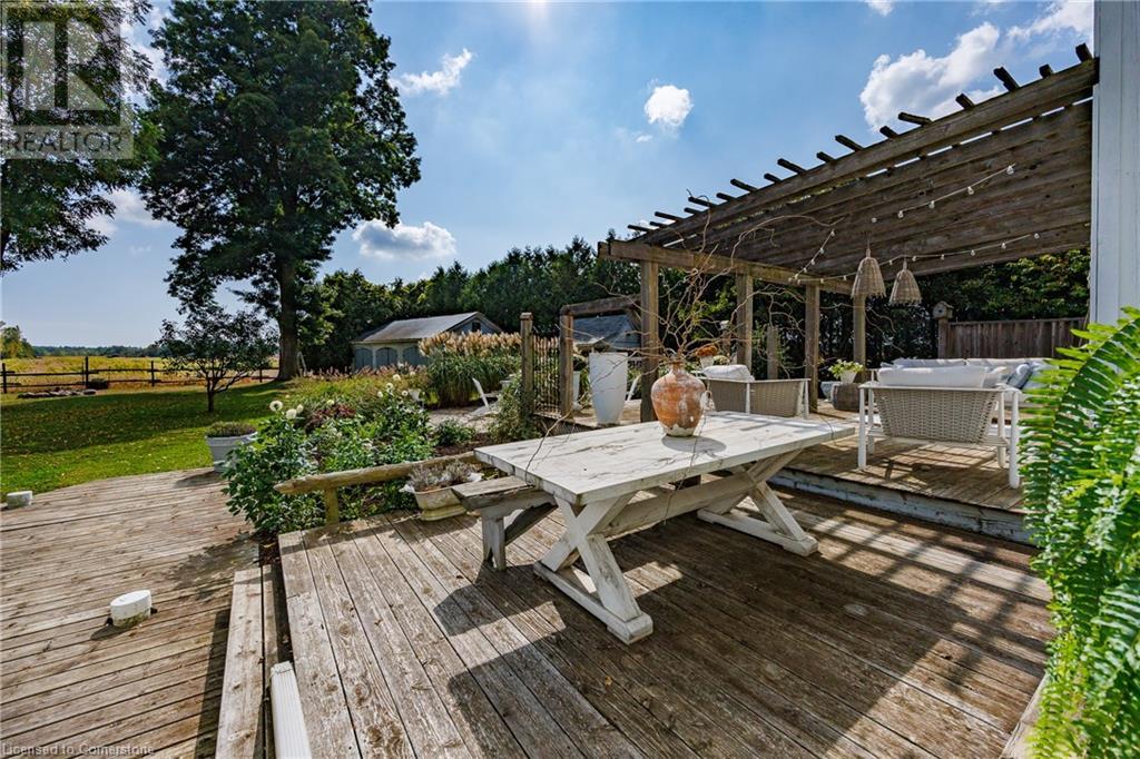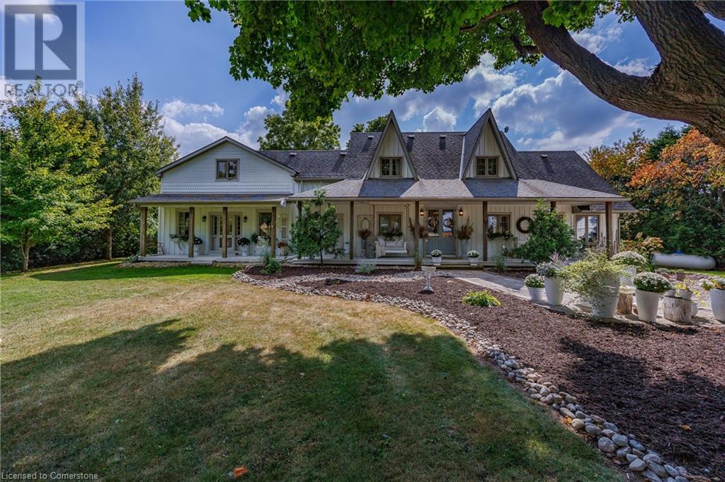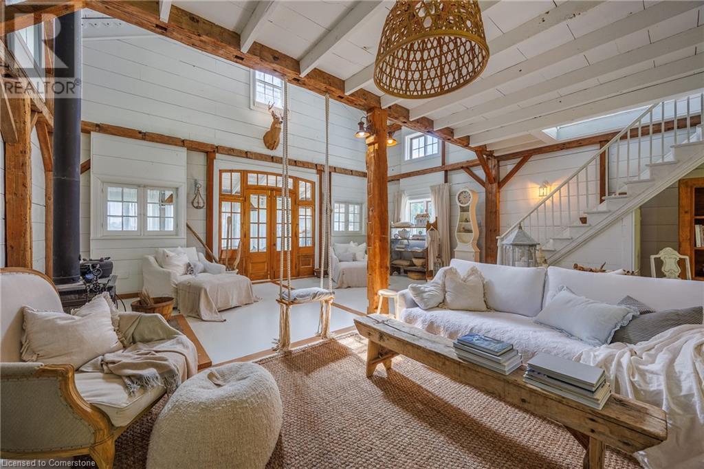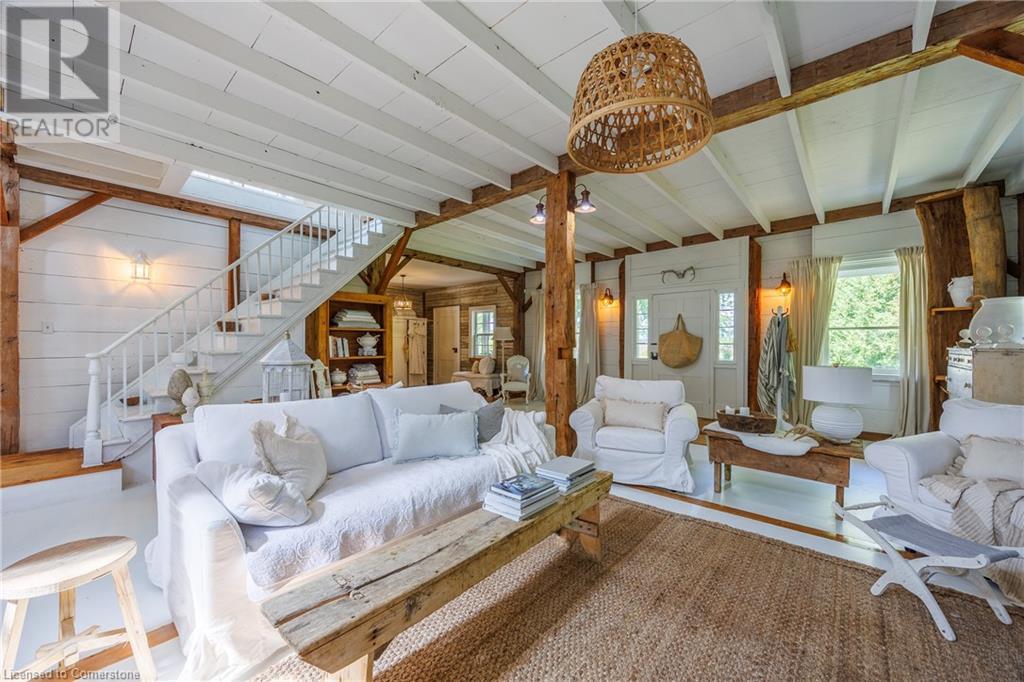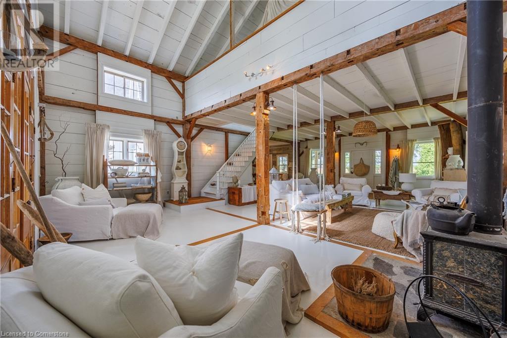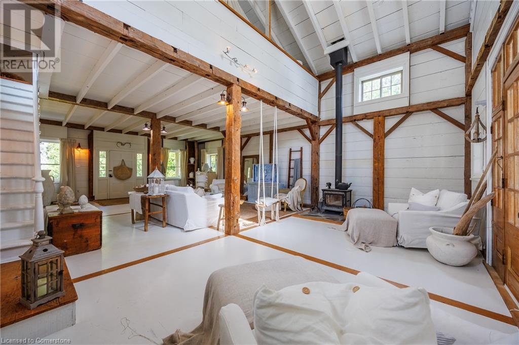 FEATURED IN MULTIPLE HOME MAGAZINES! White Countryside is a stunning 1-acre property just outside Waterford, ON. Extensively updated and renovated over the last 3 years, built in 1999, this nearly 4,000 sq ft custom home features 4 bedrooms and 2 baths, seamlessly blending timeless charm with modern design. Antique doors, barn beams, and rustic wood floors complement the inviting open floor plan. The kitchen boasts built-in appliances, a pantry, and a large island that overlooks a sunlit dining area with a vaulted ceiling. In 2006, a 36x24 addition was created by relocating an 1850s timber-framed farmhouse. This remarkable room showcases exposed wide plank walls, hand-hewn beams, a wood-burning stove, a cathedral ceiling, a spacious loft bedroom, and a delightful sunroom that opens to the backyard. The property offers multiple entertaining areas, including an expansive deck with dining space, and lounging areas overlooking the beautifully landscaped yard. A lower flagstone patio with a fire pit leads to a charming 1850s carriage house (18x36), providing ample storage and workspace for all your projects. Check out the virtual tour and book your private viewing today. Come explore this one-of-a-kind property! (id:55009)