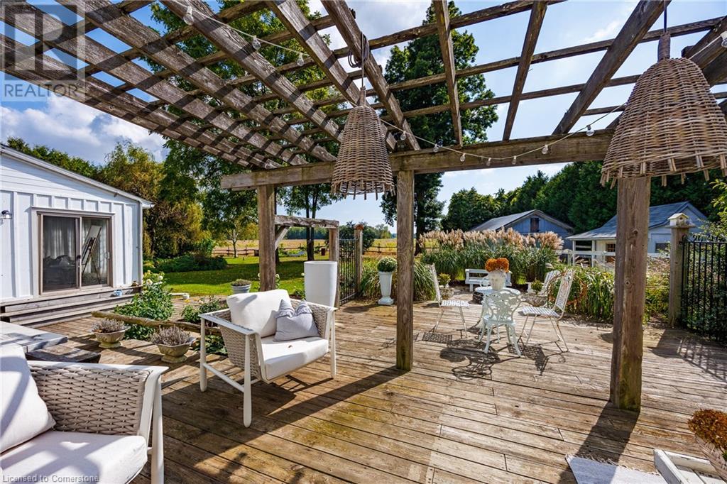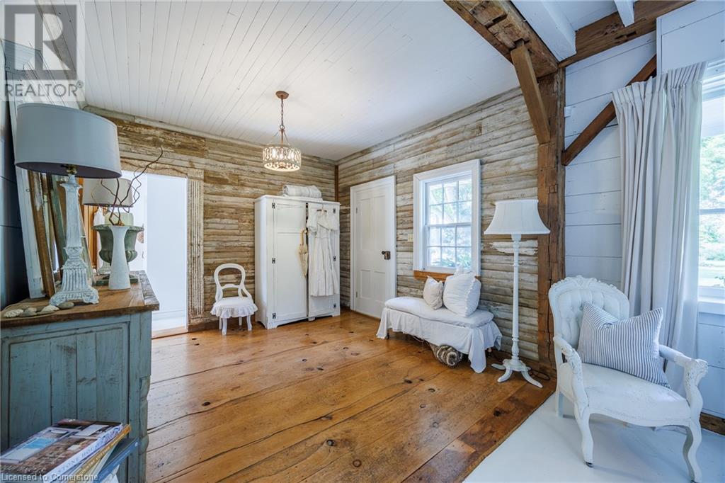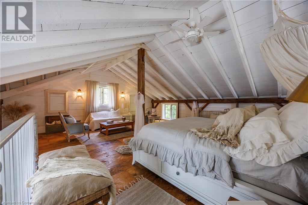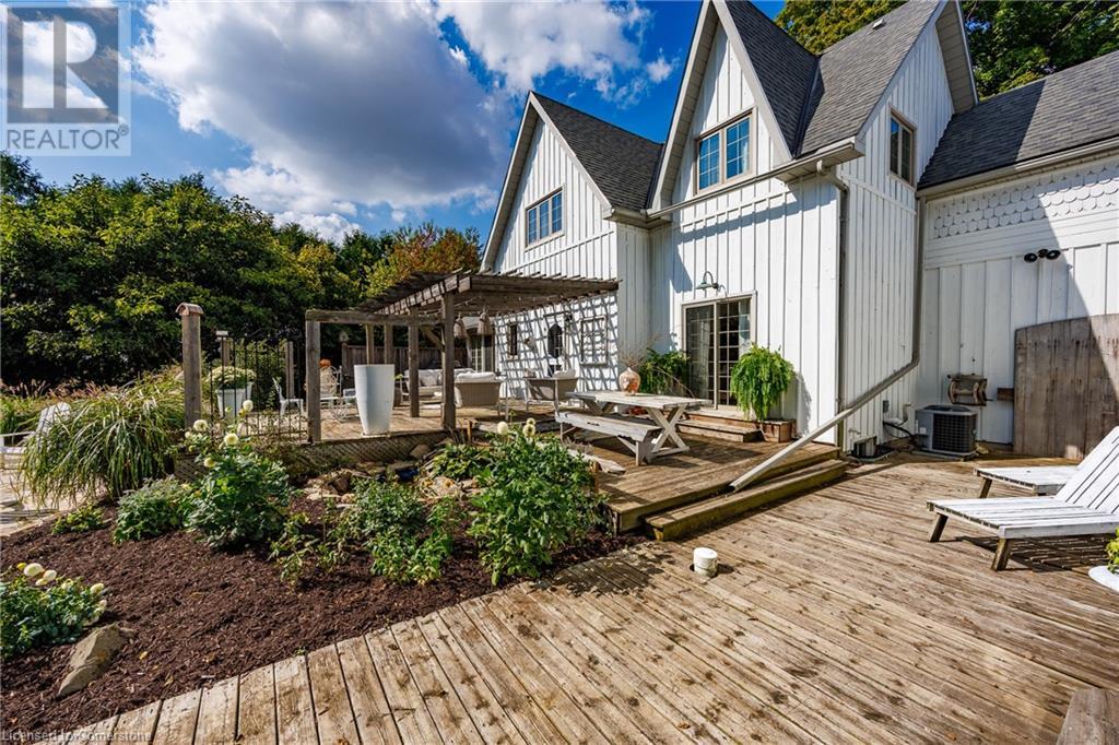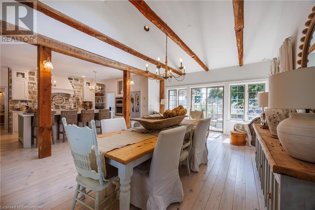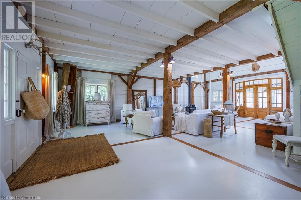 FEATURED IN MULTIPLE HOME MAGAZINES! White Countryside is a stunning 1-acre property just outside Waterford, ON. Extensively updated and renovated over the last 3 years, built in 1999, this nearly 4,000 sq ft custom home features 4 bedrooms and 2 baths, seamlessly blending timeless charm with modern design. Antique doors, barn beams, and rustic wood floors complement the inviting open floor plan. The kitchen boasts built-in appliances, a pantry, and a large island that overlooks a sunlit dining area with a vaulted ceiling. In 2006, a 36x24 addition was created by relocating an 1850s timber-framed farmhouse. This remarkable room showcases exposed wide plank walls, hand-hewn beams, a wood-burning stove, a cathedral ceiling, a spacious loft bedroom, and a delightful sunroom that opens to the backyard. The property offers multiple entertaining areas, including an expansive deck with dining space, and lounging areas overlooking the beautifully landscaped yard. A lower flagstone patio with a fire pit leads to a charming 1850s carriage house (18x36), providing ample storage and workspace for all your projects. Check out the virtual tour and book your private viewing today. Come explore this one-of-a-kind property! (id:55009)