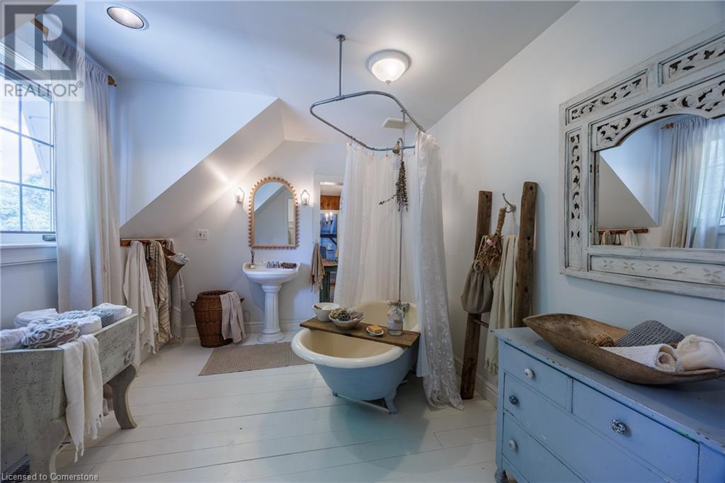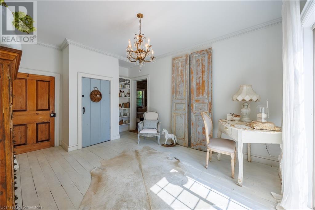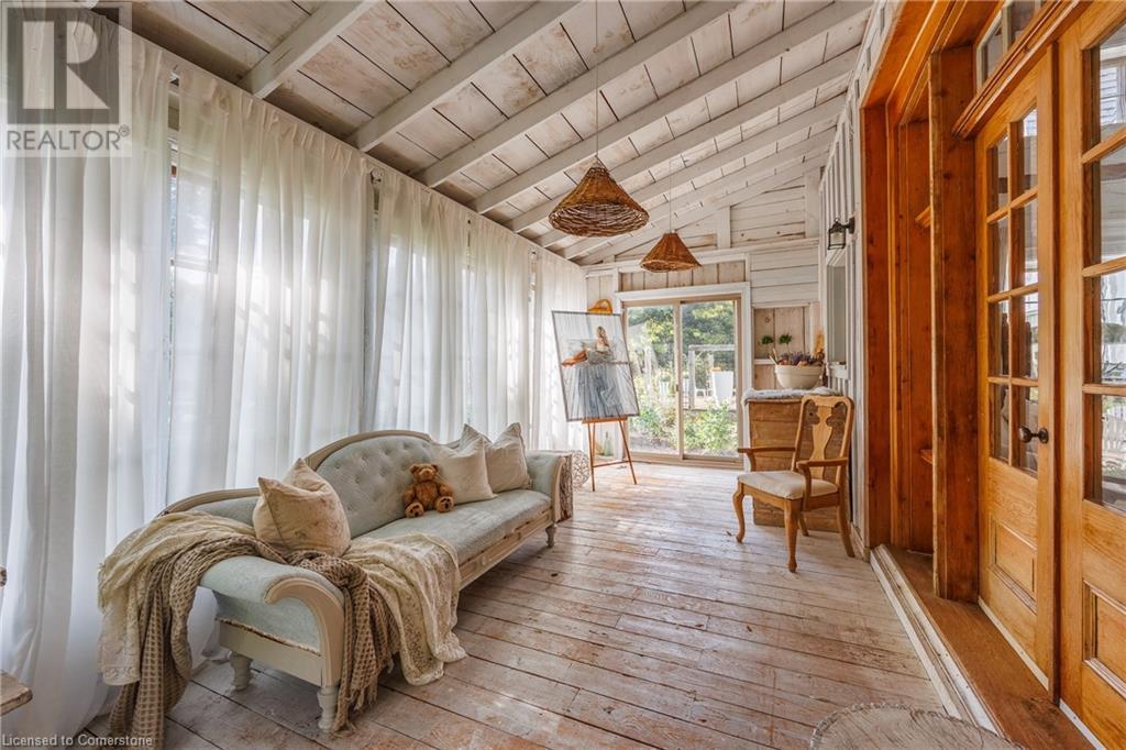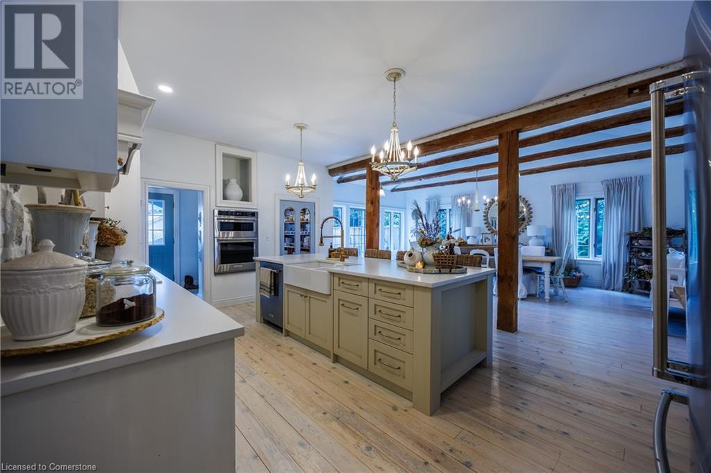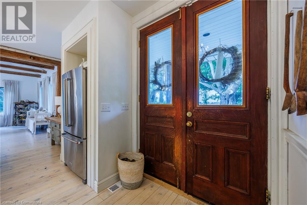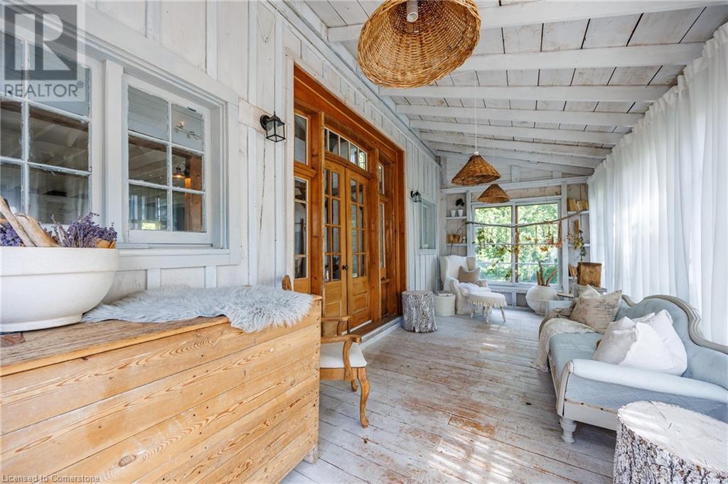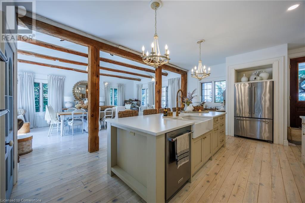 FEATURED IN MULTIPLE HOME MAGAZINES! White Countryside is a stunning 1-acre property just outside Waterford, ON. Extensively updated and renovated over the last 3 years, built in 1999, this nearly 4,000 sq ft custom home features 4 bedrooms and 2 baths, seamlessly blending timeless charm with modern design. Antique doors, barn beams, and rustic wood floors complement the inviting open floor plan. The kitchen boasts built-in appliances, a pantry, and a large island that overlooks a sunlit dining area with a vaulted ceiling. In 2006, a 36x24 addition was created by relocating an 1850s timber-framed farmhouse. This remarkable room showcases exposed wide plank walls, hand-hewn beams, a wood-burning stove, a cathedral ceiling, a spacious loft bedroom, and a delightful sunroom that opens to the backyard. The property offers multiple entertaining areas, including an expansive deck with dining space, and lounging areas overlooking the beautifully landscaped yard. A lower flagstone patio with a fire pit leads to a charming 1850s carriage house (18x36), providing ample storage and workspace for all your projects. Check out the virtual tour and book your private viewing today. Come explore this one-of-a-kind property! (id:55009)