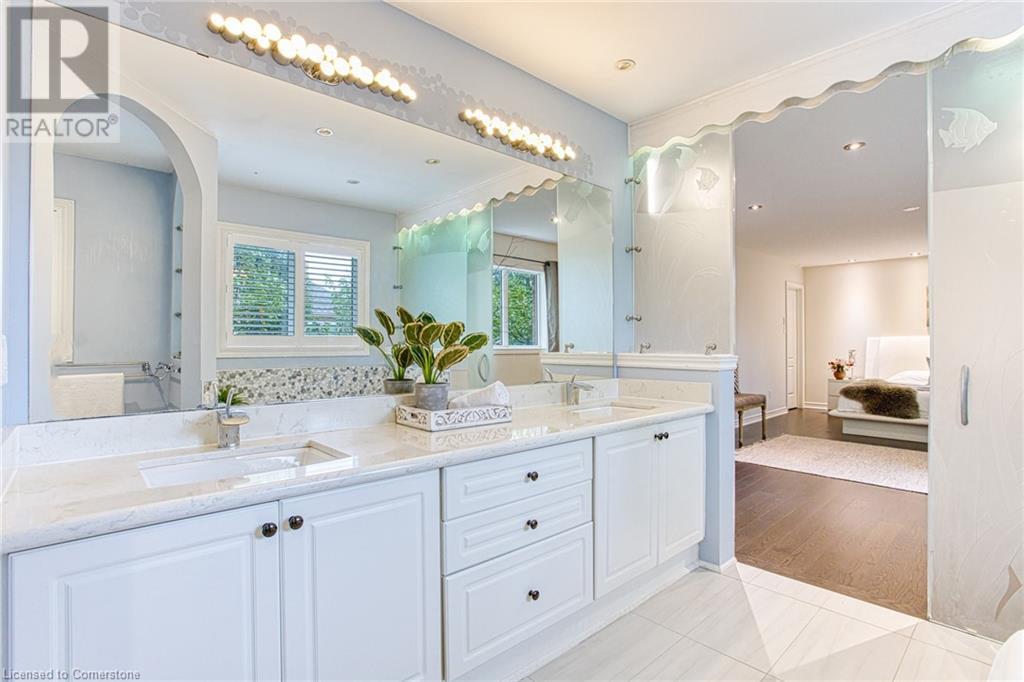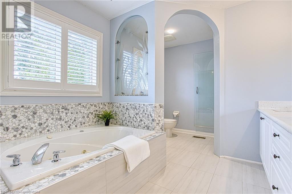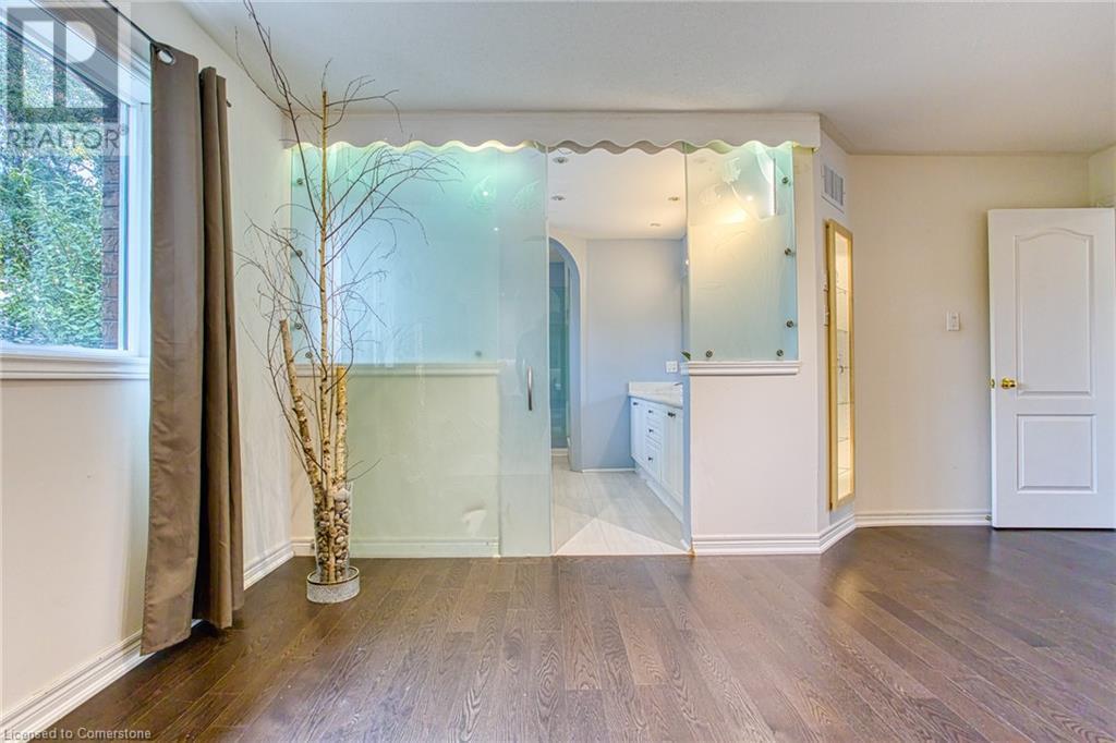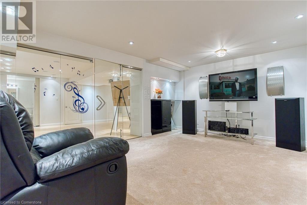Welcome to 96 Glenmeadow Crescent, Stoney Creek – a luxurious haven designed for those who appreciate elegance, comfort, and custom features throughout. This exceptional residence boasts a blend of modern amenities and bespoke design elements, creating a unique living experience. As you step inside, you're greeted by soaring ceilings that immediately convey a sense of space and sophistication. The large dining room is perfect for hosting gatherings and features an entertainment wall that adds both functionality and a touch of modern flair. Descend into the fully finished basement, a true entertainment paradise. This space is highlighted by a custom theater room, meticulously designed for the ultimate cinematic experience which is enclosed with 3/8 tempered glass doors and walls. Equipped with custom sound and speaker connections, this theater room ensures that every movie night is an immersive experience. The primary bedroom is a sanctuary of luxury. This room is complemented by a unique ensuite that rivals the finest spas. The ensuite features tempered glass wall panels and a large sliding door, offering a seamless transition between the bedroom and bathroom. The Jacuzzi tub, perfect for unwinding after a long day, and enjoy the convenience of double sinks with instant hot water, ensuring a comfortable and efficient morning routine. Step outside to the backyard, where privacy and tranquility await surrounded by mature trees. The green turf grass provides a vibrant, summer-like appearance year-round, eliminating the hassle of lawn maintenance while ensuring your yard always looks pristine. The front driveway enhances the home's curb appeal, lined with built-in lights on both sides. These lights not only illuminate the path but also add a touch of elegance, welcoming you home each evening. 96 Glenmeadow Crescent is more than just a house; it's a lifestyle. Every corner of this home has been thoughtfully designed to offer luxury, comfort, and convenience. (id:55009)