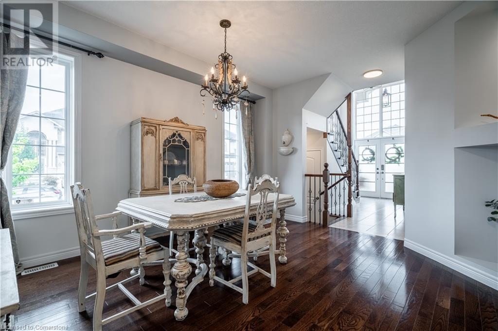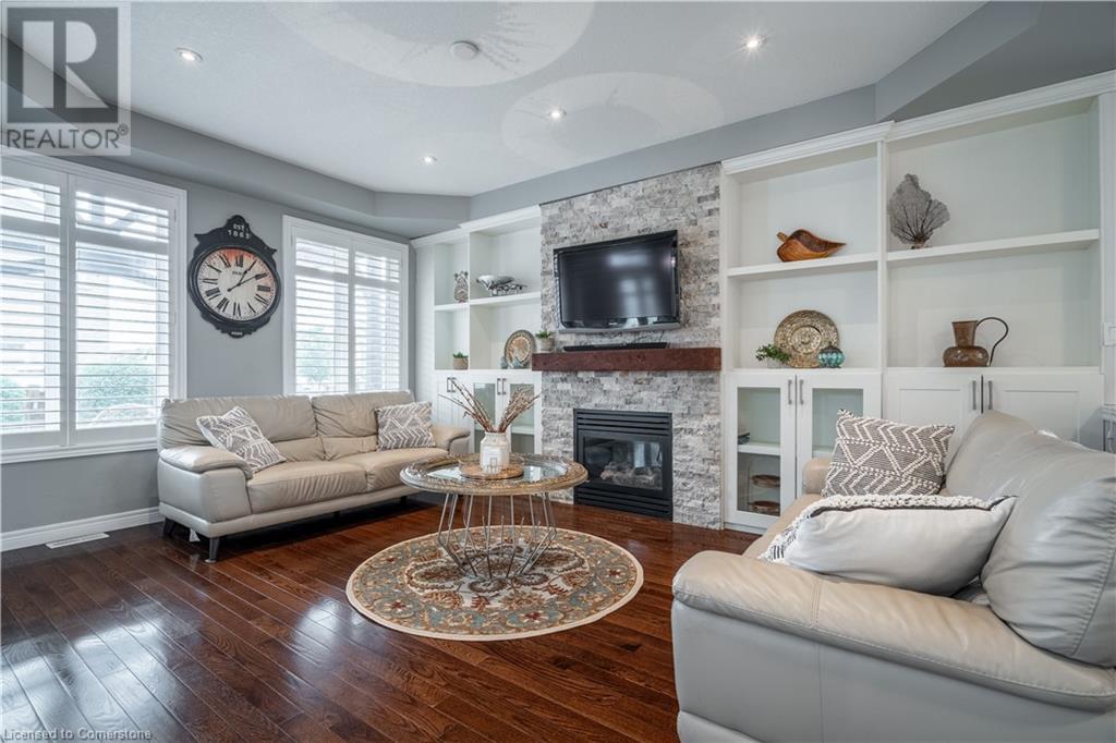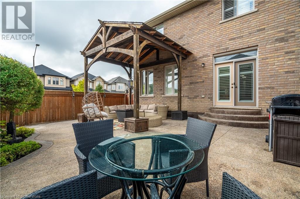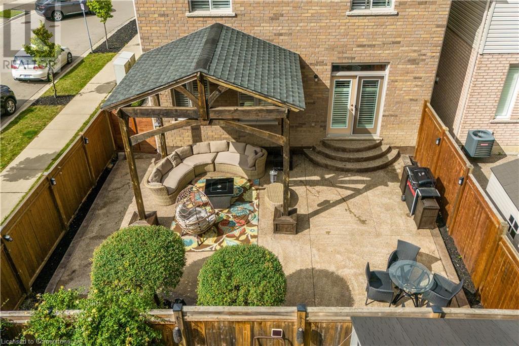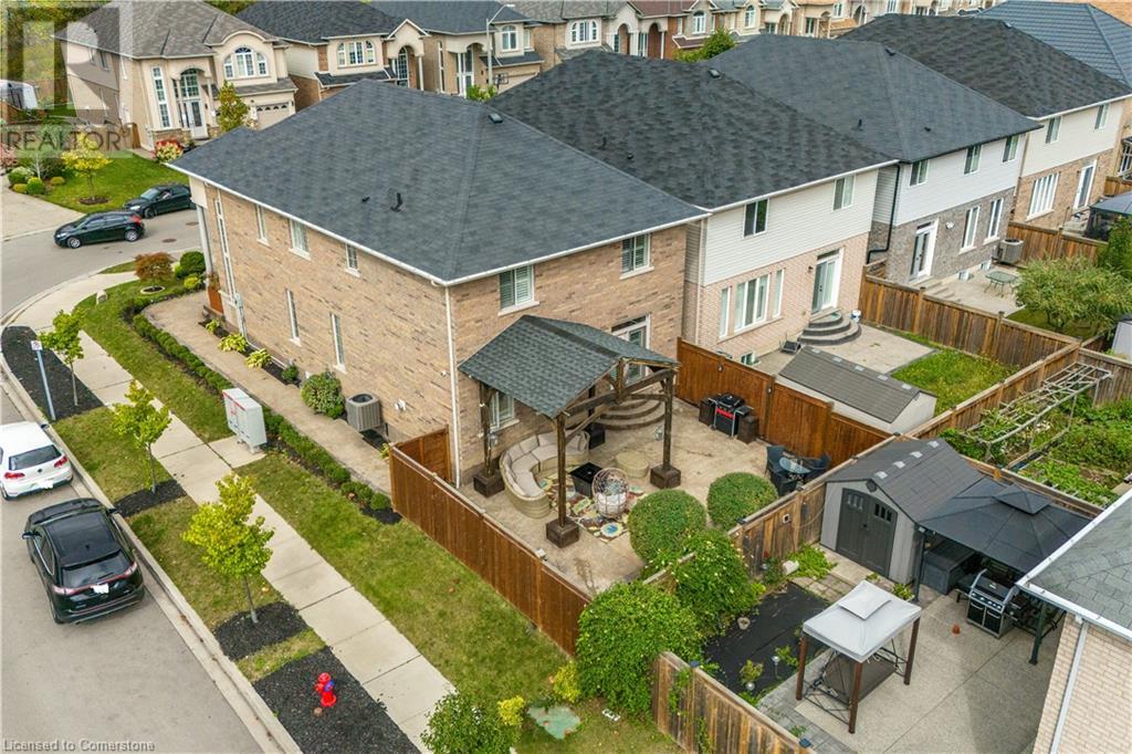 Beautiful 4-bed, 3-bath two-storey private corner-lot Boasts over 2500 sq. ft. of luxury living space in the sought after neighbourhood on the Hamilton Mountain. This move in ready home is walking distances to restaurants, shopping, walking trails and easy high access for the commuter. You will feel the pride of ownership in this wonderfully cared for home featuring plenty of upgrades, including granite countertops, a coffee bar, custom built and extended cabinets, high end appliances. Open concept featuring stone accent fireplace. Hardwood floors and California shutters complete the space. Upstairs offers 4 spacious bedrooms and an oversized primary bedroom with a 4-piece spa ensuite with a skylight. Custom gazebo in the backyard makes it a go-to hangout spot to entertain family and friends. In-ground sprinklers make it easy to maintain. (id:55009)