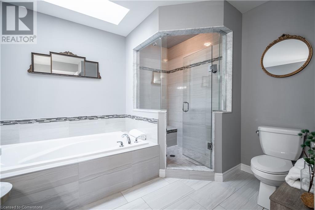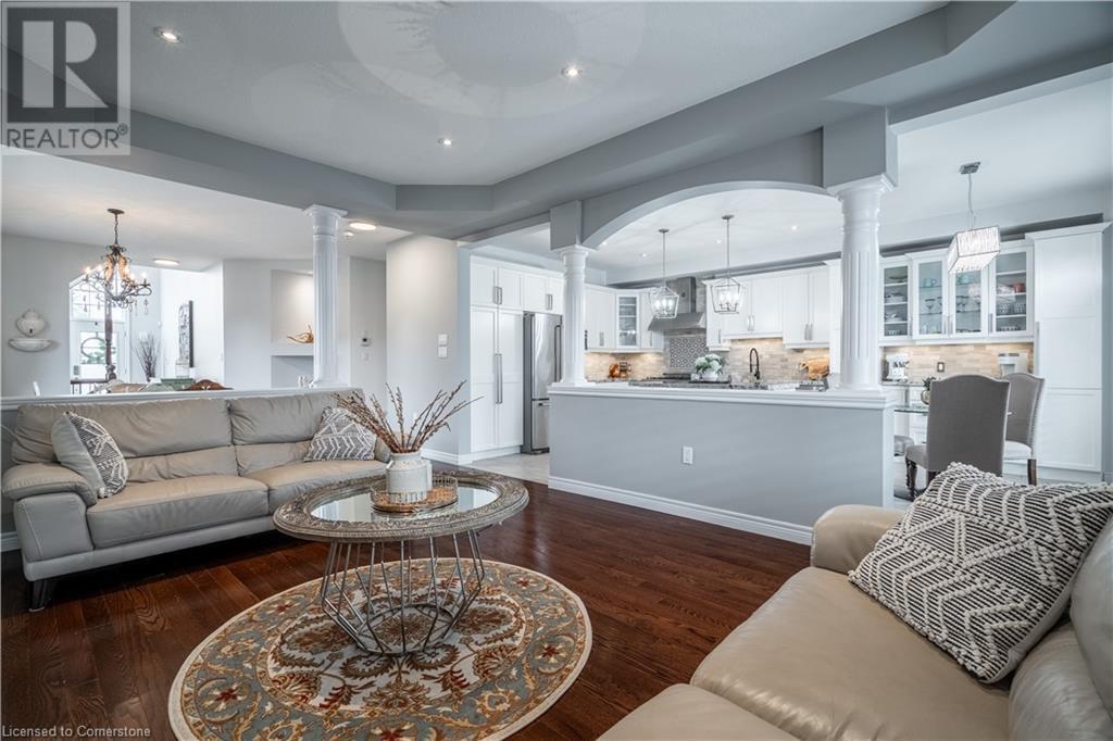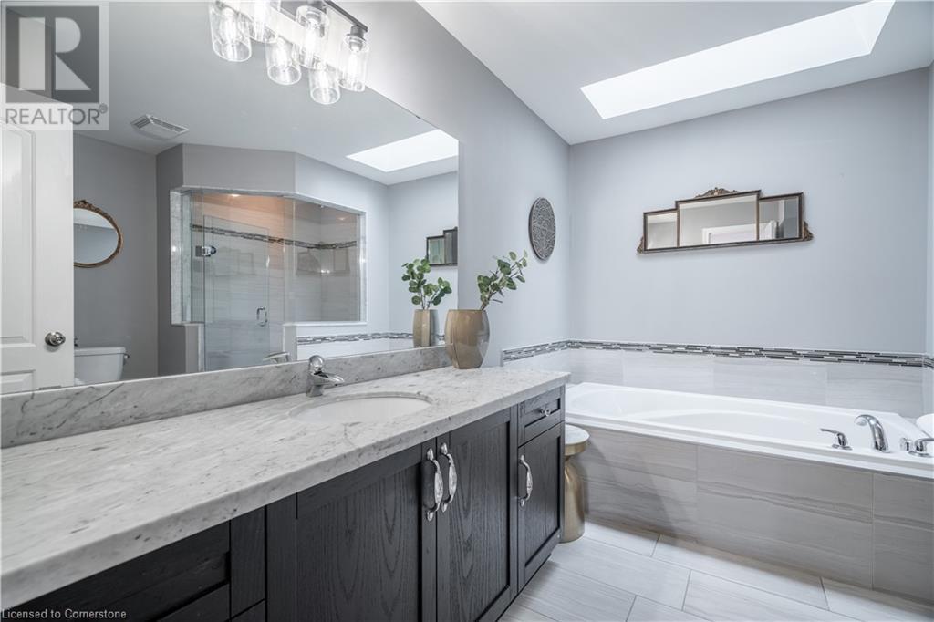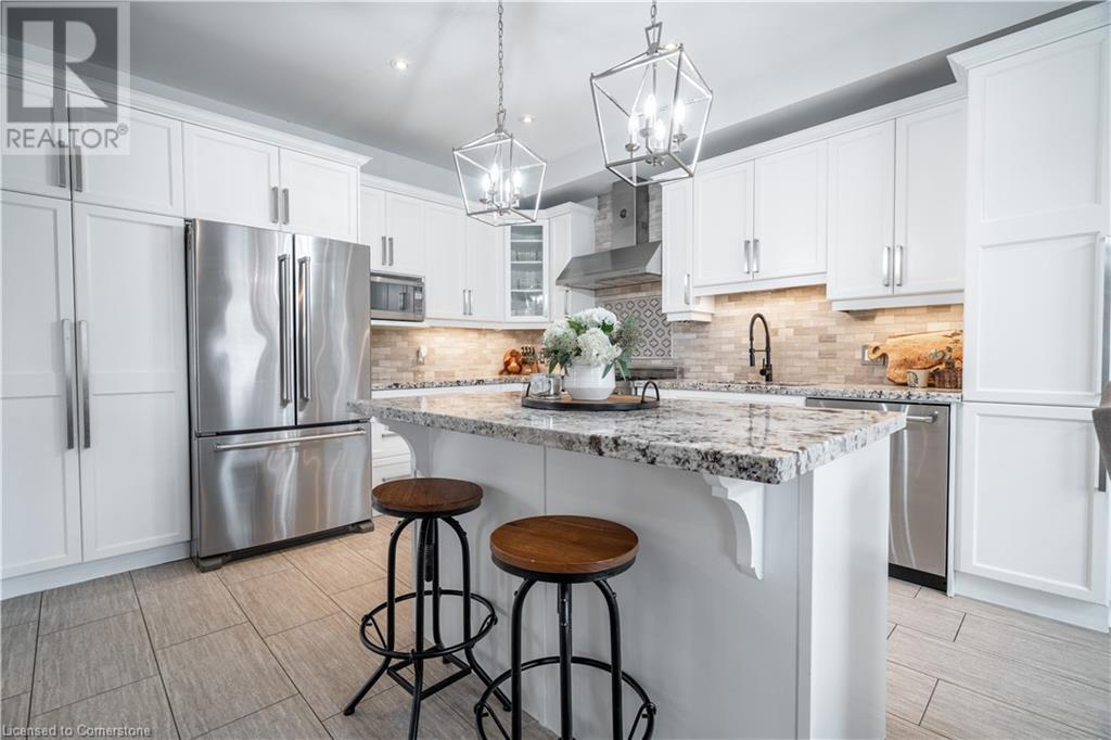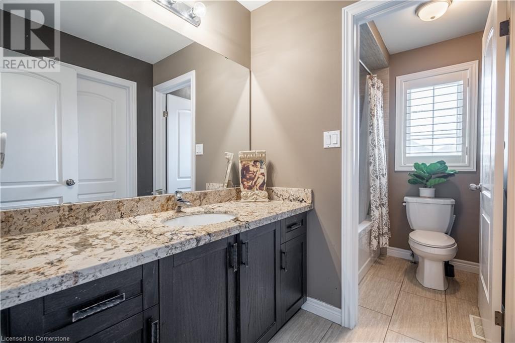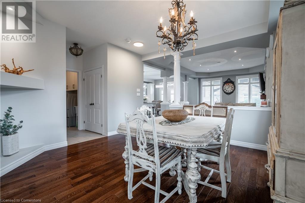 Beautiful 4-bed, 3-bath two-storey private corner-lot Boasts over 2500 sq. ft. of luxury living space in the sought after neighbourhood on the Hamilton Mountain. This move in ready home is walking distances to restaurants, shopping, walking trails and easy high access for the commuter. You will feel the pride of ownership in this wonderfully cared for home featuring plenty of upgrades, including granite countertops, a coffee bar, custom built and extended cabinets, high end appliances. Open concept featuring stone accent fireplace. Hardwood floors and California shutters complete the space. Upstairs offers 4 spacious bedrooms and an oversized primary bedroom with a 4-piece spa ensuite with a skylight. Custom gazebo in the backyard makes it a go-to hangout spot to entertain family and friends. In-ground sprinklers make it easy to maintain. (id:55009)