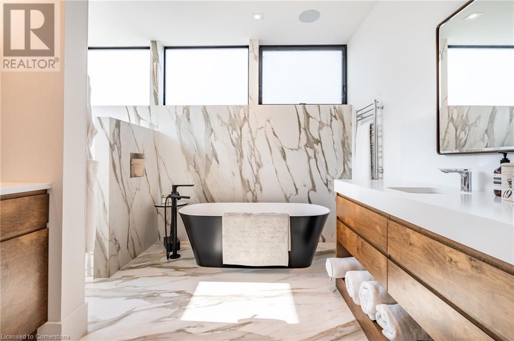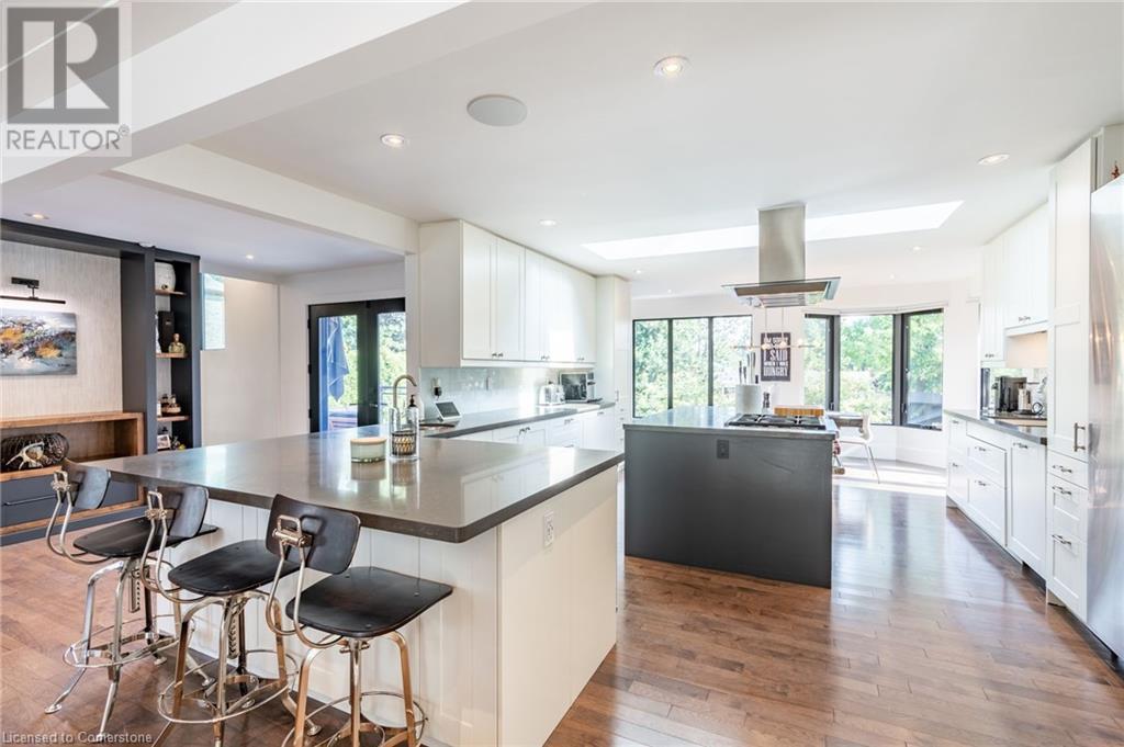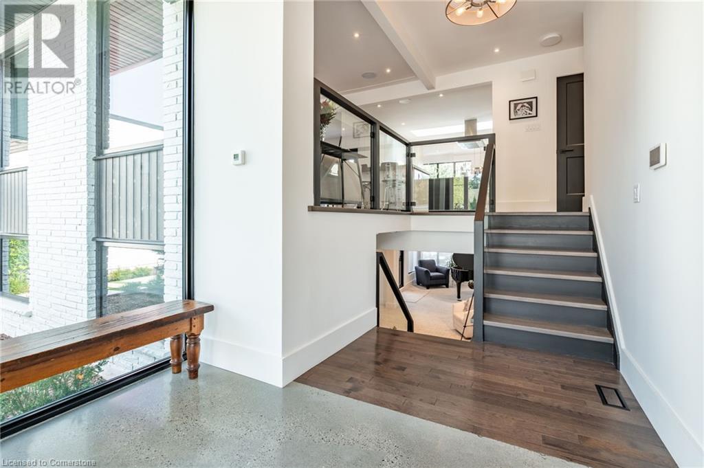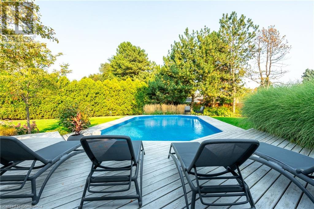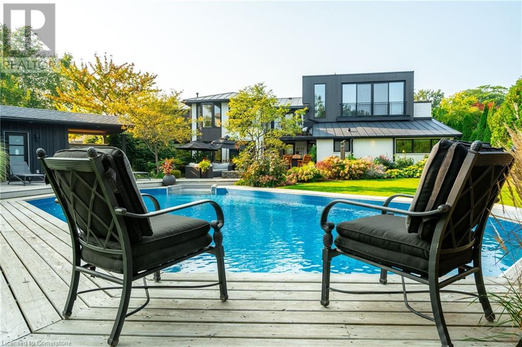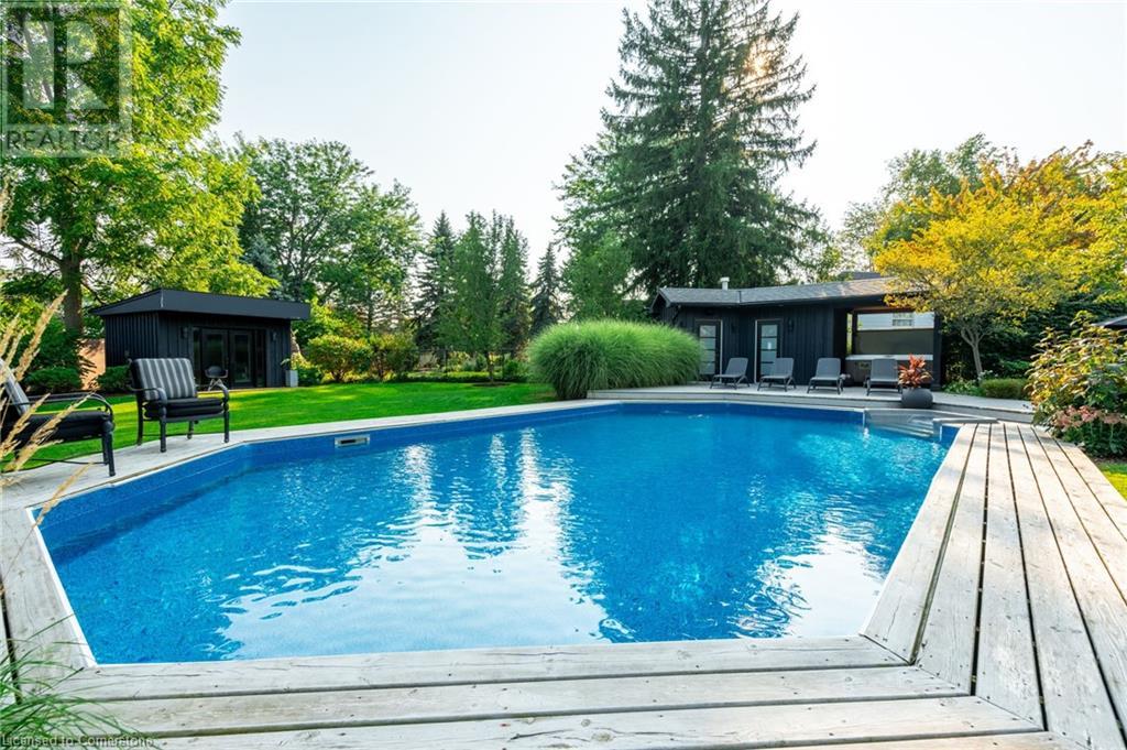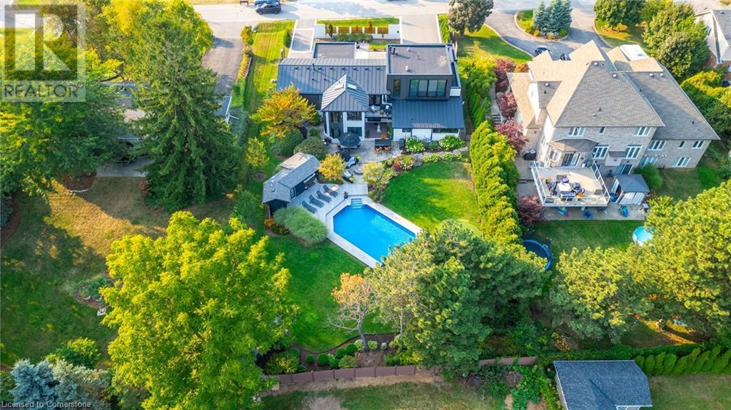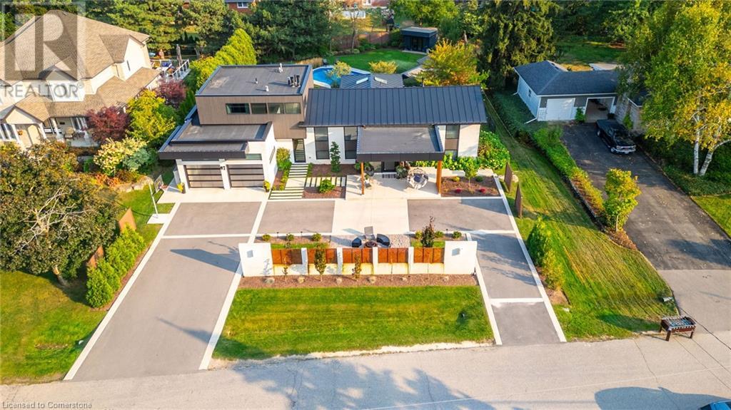 Stop your search—this stunning property has it all! Experience magnificent architectural design in this beautifully renovated home. Enter through a striking glass wall to discover a chef’s kitchen featuring a spacious island, seamlessly connected to the living and dining areas.The state-of-the-art main bath boasts sensor faucets, a heated floor, and serves two generously sized bedrooms. Ascend to the private primary suite, a true sanctuary with an incredible ensuite and a balcony overlooking the serene backyard. The lower level is an entertainer’s dream, with a large recreation area that walks out to an inviting pool. This level also includes two additional bedrooms and bathrooms, providing ample space for family and guests. With a little creativity, you can transform one of the backyard sheds into a recreation room or gym. Car enthusiasts will appreciate the impressive 4-car tandem garage, complete with epoxy flooring and a TV. Set on a rare half-acre lot in the heart of Waterdown, this property is just a short walk from shops and restaurants. This exceptional home is perfect for the most discerning buyer. Don’t wait—opportunities like this don’t last long. Let’s get you home! (id:55009)