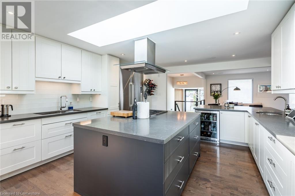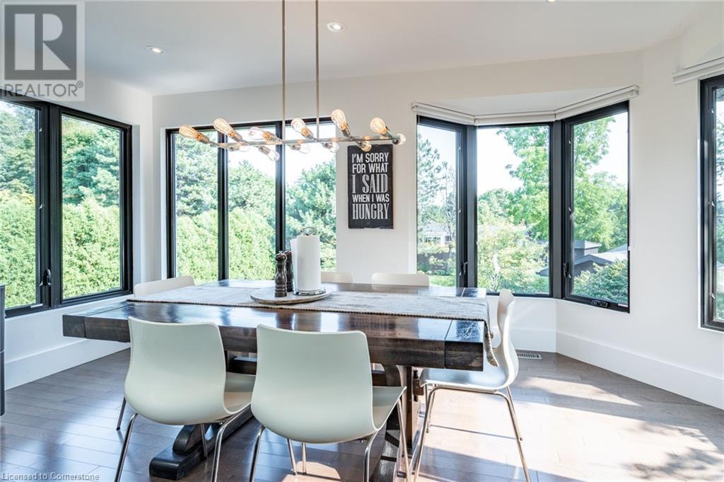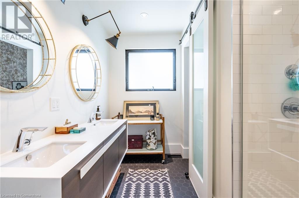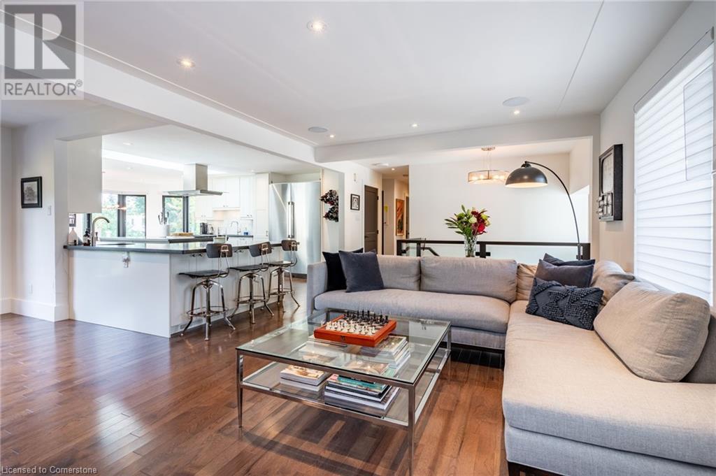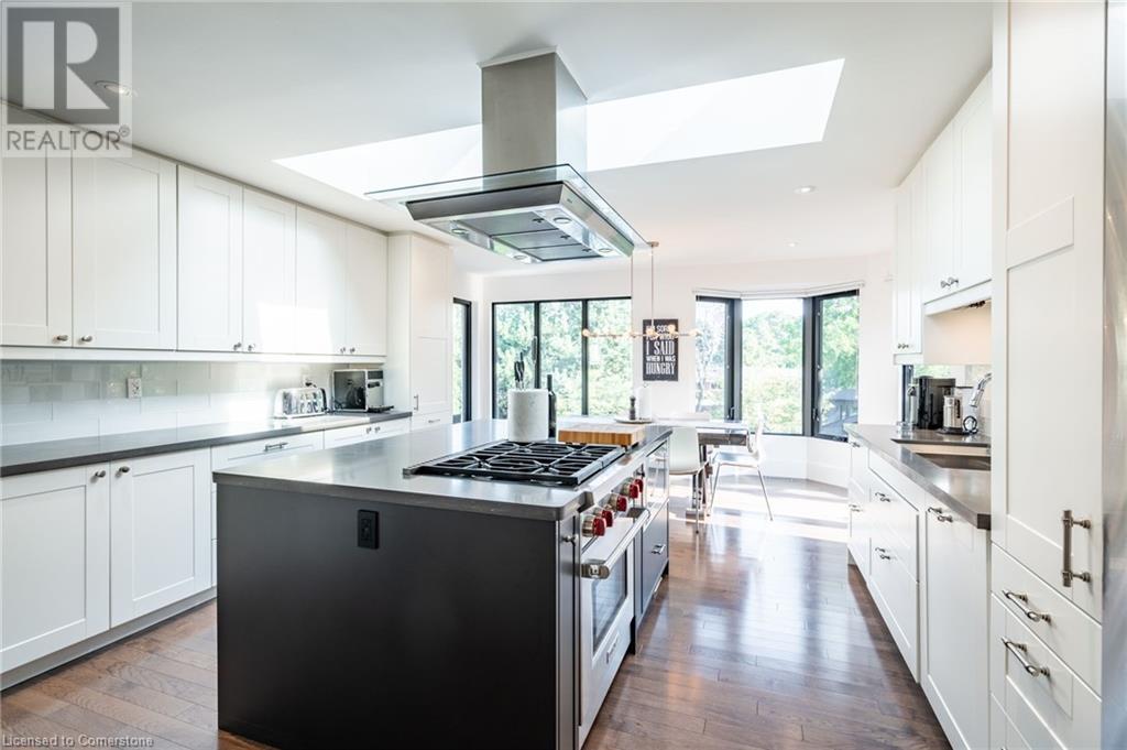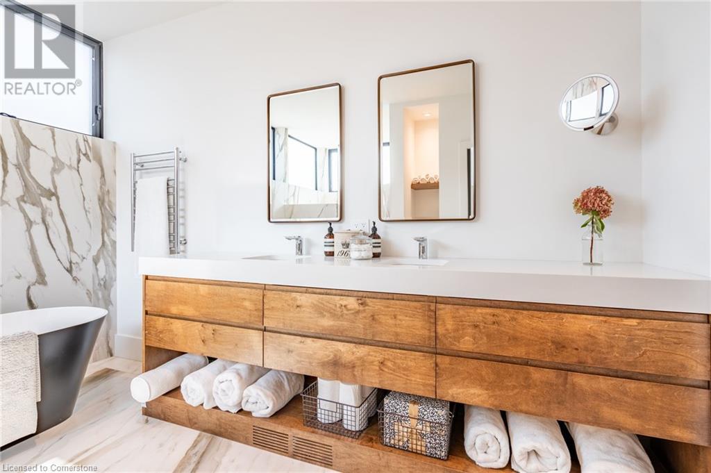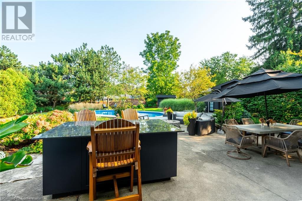 Stop your search—this stunning property has it all! Experience magnificent architectural design in this beautifully renovated home. Enter through a striking glass wall to discover a chef’s kitchen featuring a spacious island, seamlessly connected to the living and dining areas.The state-of-the-art main bath boasts sensor faucets, a heated floor, and serves two generously sized bedrooms. Ascend to the private primary suite, a true sanctuary with an incredible ensuite and a balcony overlooking the serene backyard. The lower level is an entertainer’s dream, with a large recreation area that walks out to an inviting pool. This level also includes two additional bedrooms and bathrooms, providing ample space for family and guests. With a little creativity, you can transform one of the backyard sheds into a recreation room or gym. Car enthusiasts will appreciate the impressive 4-car tandem garage, complete with epoxy flooring and a TV. Set on a rare half-acre lot in the heart of Waterdown, this property is just a short walk from shops and restaurants. This exceptional home is perfect for the most discerning buyer. Don’t wait—opportunities like this don’t last long. Let’s get you home! (id:55009)