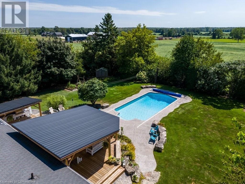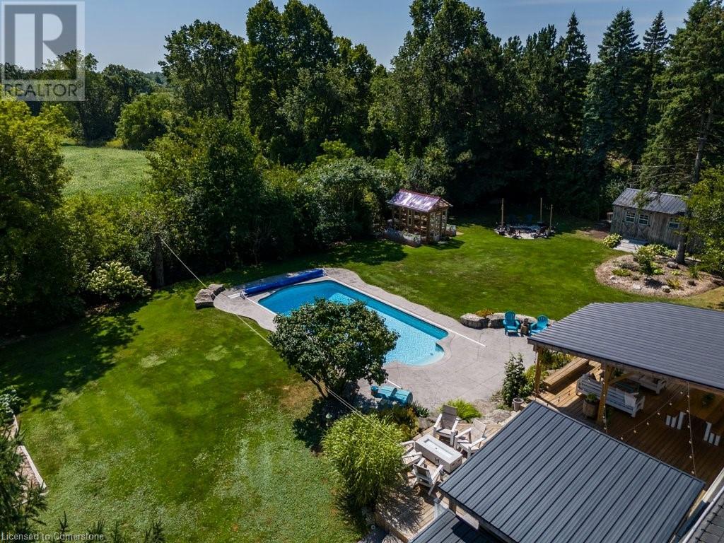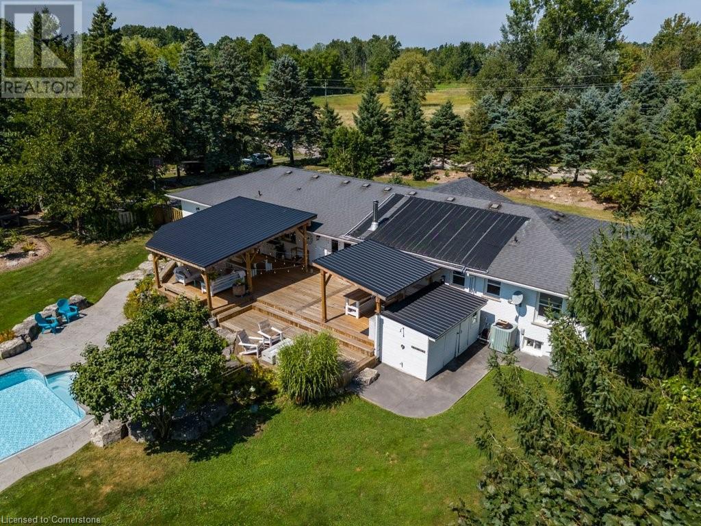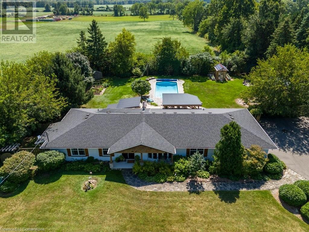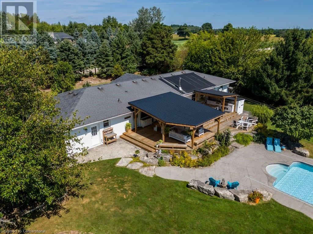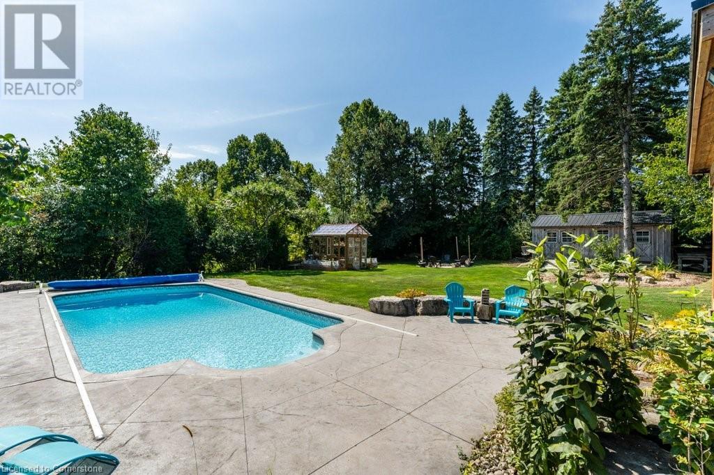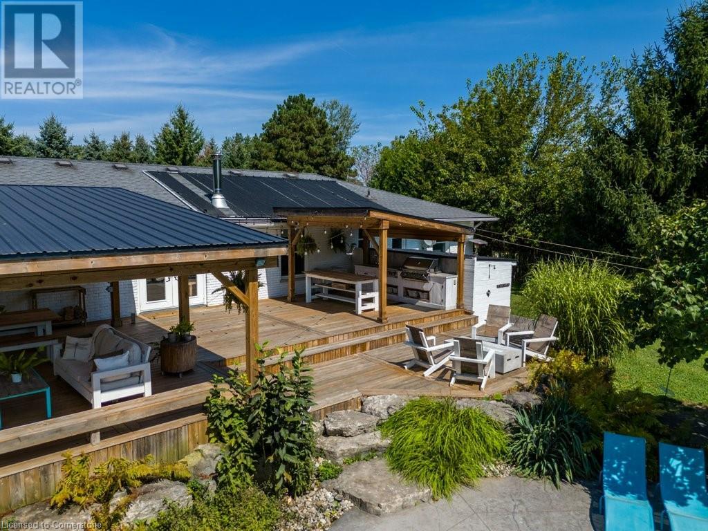 Privacy abounds at this rural retreat. Welcome to 974 Safari Road, a special property for those who love to relax & enjoy life to the fullest. This spacious bungalow has been lovingly updated with rustic charm & modern amenities. Central to the open concept floorplan is a generous kitchen with extensive cabinetry, loads of granite counters & a massive central island which makes it easy to have a casual meal with the family. If you're entertaining a larger group spread out to the inviting living room with fireplace & dining area that provides ample space for your harvest table. The main floor is rounded out with three bedrooms, including a large primary with ensuite bath & laundry room, another full bath & a powder room as well. The lower level almost doubles your living space, providing a large family room with fireplace, wet bar, games area, bunkie-style bedroom for when guests come to stay, another full bath, dedicated exercise room & walk-up to the yard. This property has so many unique features, but the back yard MUST NOT be overlooked! Enjoy the outdoors rain or shine with the expansive deck with covered seating area & outdoor kitchen. Dive into the inground pool then rinse off in the outdoor shower. Putter in the greenhouse or work on a project in the shed! And of course, chill out by the fire pit with a cozy blanket. The property also includes a double garage, 2-pc outdoor bath, whole home generator, loads of parking & much more. This one is a must-see! (id:55009)