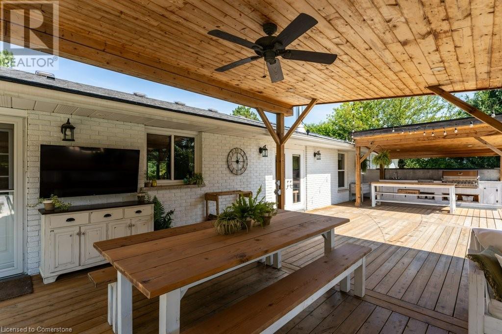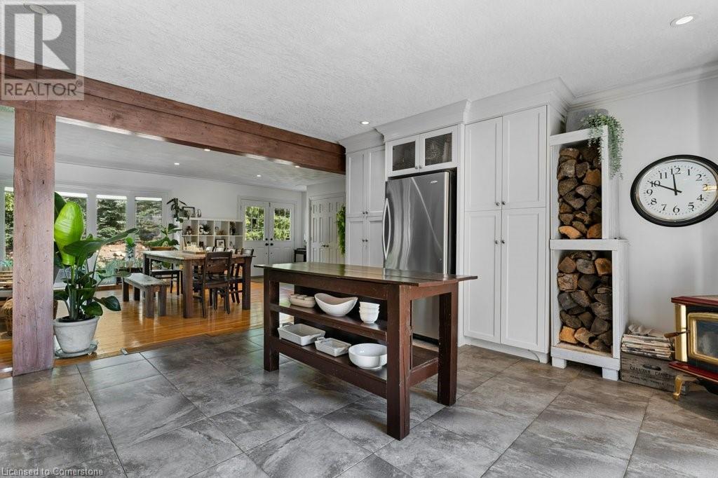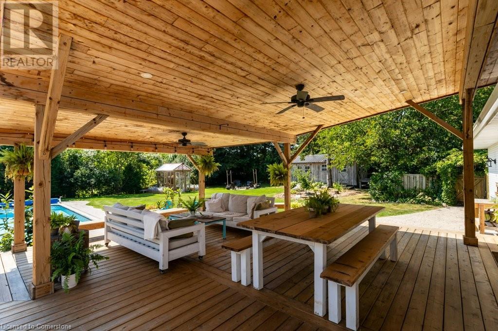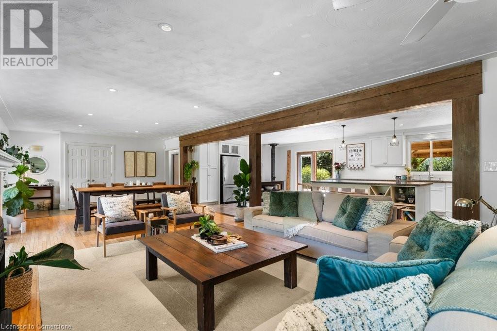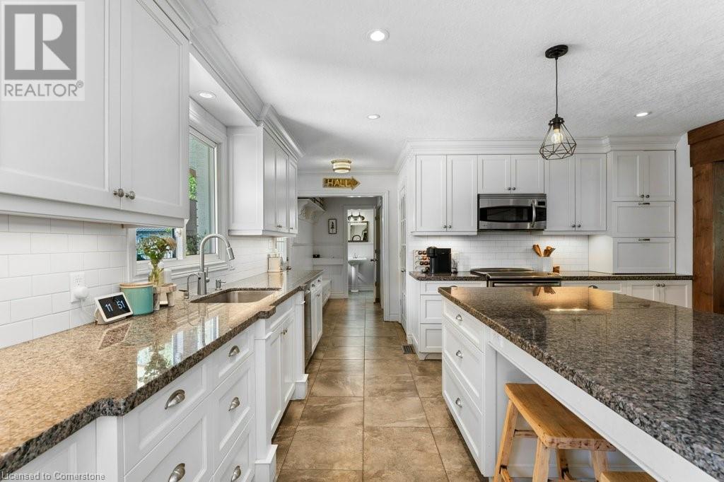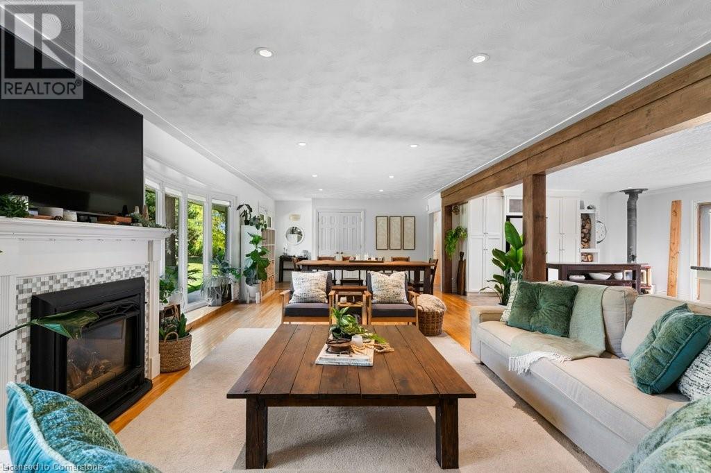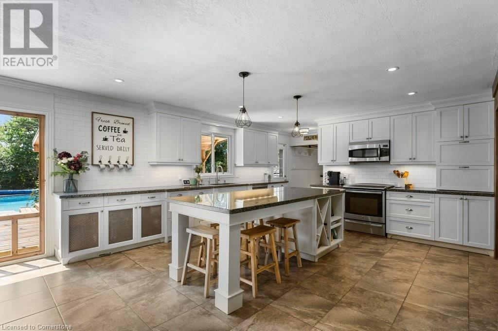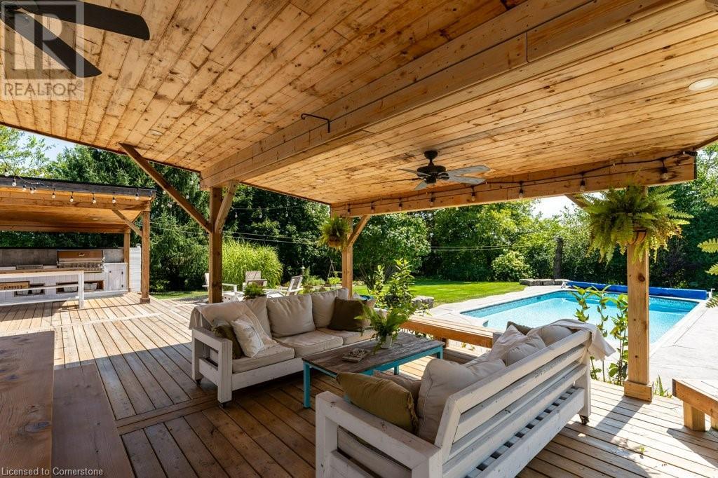 Privacy abounds at this rural retreat. Welcome to 974 Safari Road, a special property for those who love to relax & enjoy life to the fullest. This spacious bungalow has been lovingly updated with rustic charm & modern amenities. Central to the open concept floorplan is a generous kitchen with extensive cabinetry, loads of granite counters & a massive central island which makes it easy to have a casual meal with the family. If you're entertaining a larger group spread out to the inviting living room with fireplace & dining area that provides ample space for your harvest table. The main floor is rounded out with three bedrooms, including a large primary with ensuite bath & laundry room, another full bath & a powder room as well. The lower level almost doubles your living space, providing a large family room with fireplace, wet bar, games area, bunkie-style bedroom for when guests come to stay, another full bath, dedicated exercise room & walk-up to the yard. This property has so many unique features, but the back yard MUST NOT be overlooked! Enjoy the outdoors rain or shine with the expansive deck with covered seating area & outdoor kitchen. Dive into the inground pool then rinse off in the outdoor shower. Putter in the greenhouse or work on a project in the shed! And of course, chill out by the fire pit with a cozy blanket. The property also includes a double garage, 2-pc outdoor bath, whole home generator, loads of parking & much more. This one is a must-see! (id:55009)