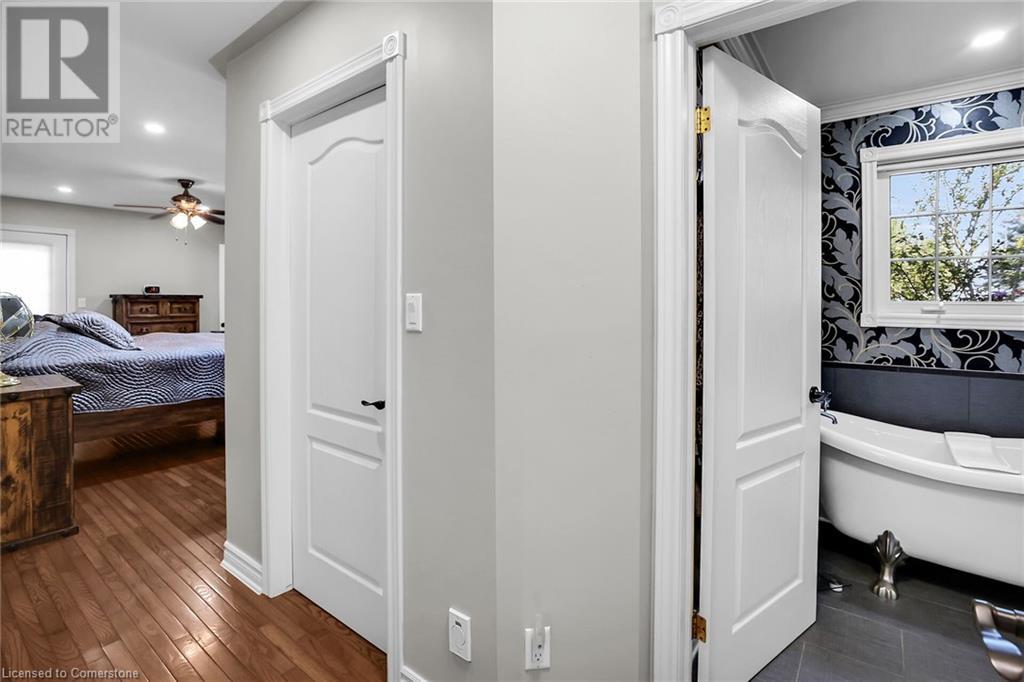 All brick custom built bungalow situated on a 1 acre manicured lot with beautiful mature trees & stocked koi pond in prime Fenwick location! Enter the foyer you will find a large living/dining room area with hardwood floors. Eat-in kitchen with loads of granite counter space, coffee bar, island and French door access to tiered back deck. The master bedroom retreat has a luxurious 4-piece ensuite with a clawfoot tub, glass shower, large walk-in closet & access to your own private family room with a gas fireplace & heated floor. 2nd Bedroom with hardwood floors, main bathroom, additional 2-piece bathroom, & main floor laundry with access to the oversized two car garage finish the main floor. Walk up from basement in the garage or oak staircase to a fully in-law setup in the lower level. Large rec. room with recent gas fireplace, two bedrooms, 3-piece bath, office space & 16'x22' 2nd kitchen. Extra’s include recent garage door, ss appliances, heated garage. The yard is lined with cedars and there are manicured gardens throughout. Even a chipping green. Don't miss out on this opportunity of owning a piece of paradise in the country, close to amenities and short drive to walking trail, wineries & QEW. (id:55009)