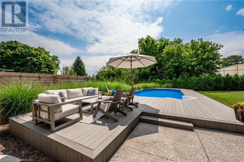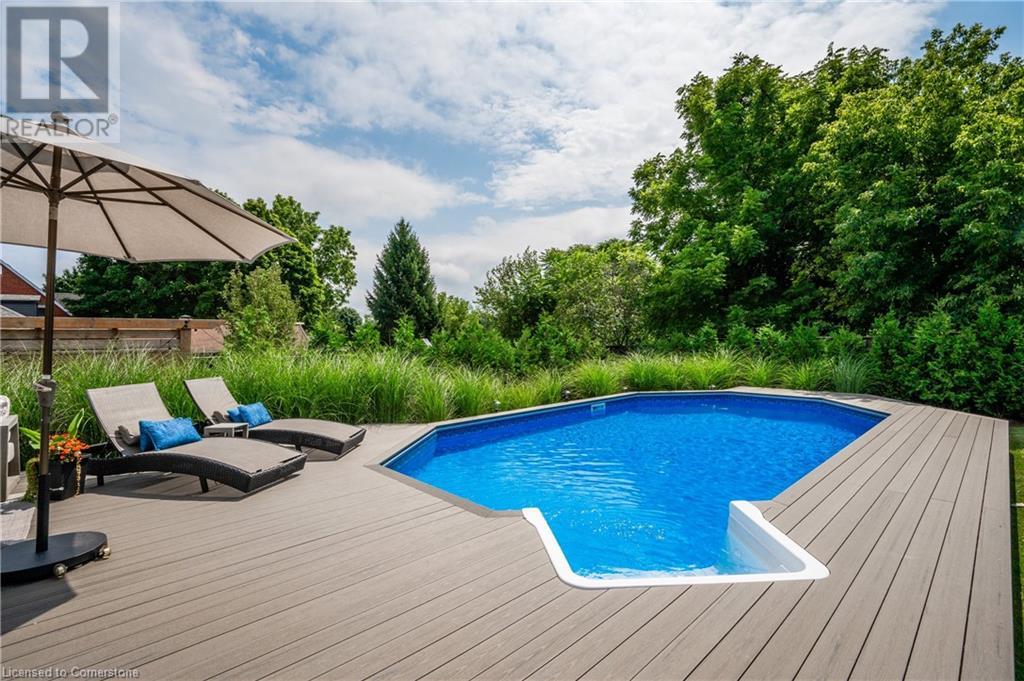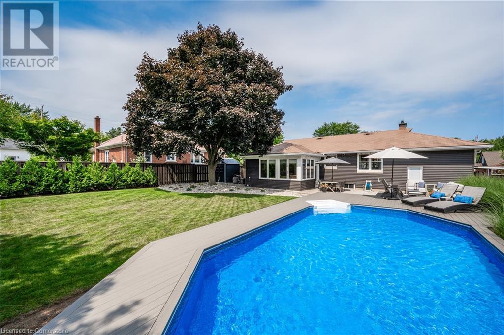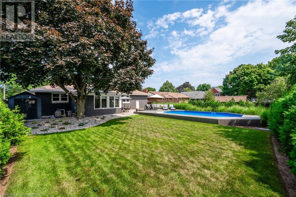 South Aldershot sought after neighbourhood on mature tree lined street, walking distance to the lake, RBG, La Salle Park, trails. Mins to the downtown shopping & dining, Spencer Smith Park, Art Gallery, hospital. Lovely bungalow on massive lot with private prof landscaped yard w pool. and levels of composite decking great for entertaining. Almost 3000sqft of finished living area. 3+1 bdrms 2 full bathrooms. Updated kitchen and bathrooms, cozy all season sunroom addition with gas fp. 50yr aluminum roof, aggregate walkway, patio and porch with parking for 4 plus garage. Large windows throughout provide natural light throughout. Close to Elementary & highschools, GO Station, HWY 403 & QEW. (id:55009)
