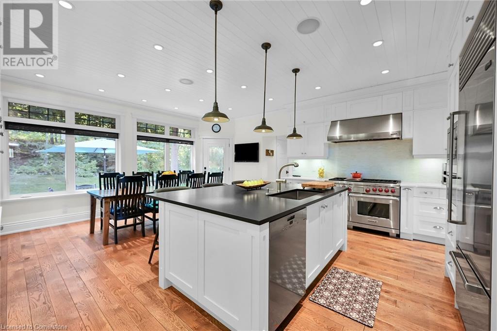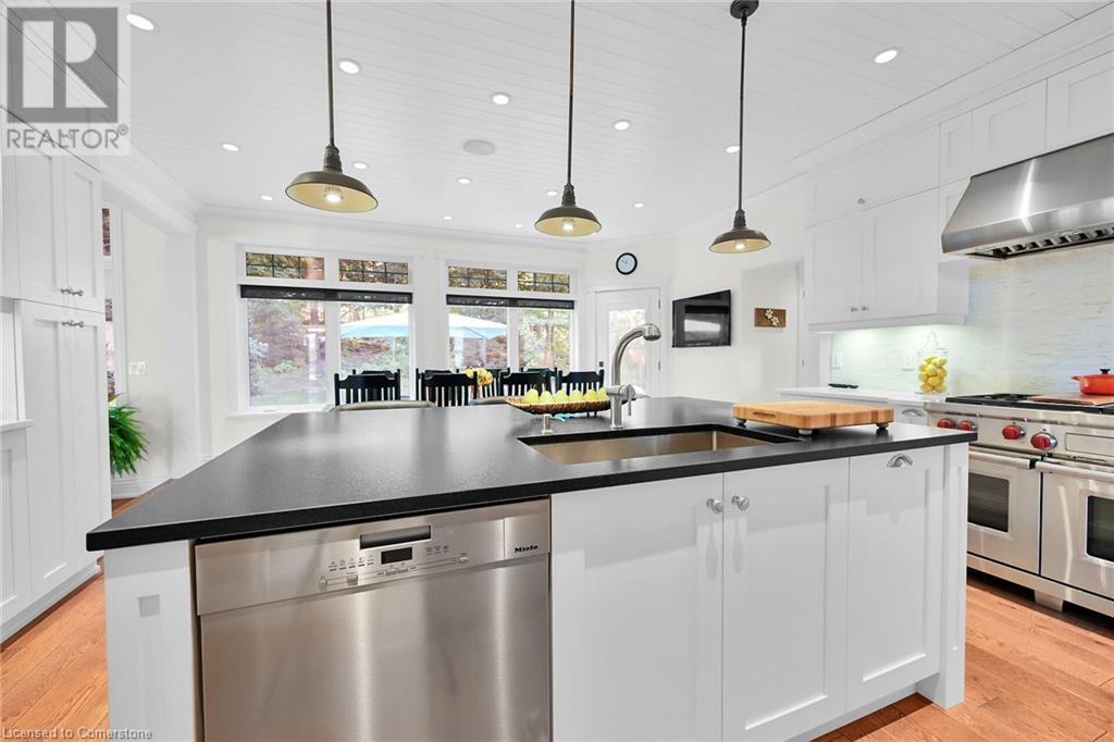 ESCARPMENT LOT. NO REAR NEIGHBORS. ENJOY THE BIRDS, DEER, FOX THAT VISIT THE LOVELY YARD. BEAUTIFUL PROFESSIONALLY LANDSCAPED GARDENS. OVERSIZED DOUBLE GARAGE. 3 + 1 BEDS, 2 1/2 BATHS. STUNNING CHEF'S EATIN KITCHEN. HUGE ISLAND. WOLFE RANGE, SUBEZERO FRIDGE, WARMING DRAWER, NEW DISHWASHER. GORGEOUS FAMILY ROOM W/FIREPLACE & SOARING CEILINGS. SEPARATE DINING & LIVING ROOM. FINSIHED LOWER LEVEL, REC ROOM, HOBBY ROOM, BEDROOM, LOADS OF STORAGE. CUSTOM & QUALITY THROUGHOUT. MINUTES TO QEW & EASY HIGHWAY ACCESS. (id:55009)