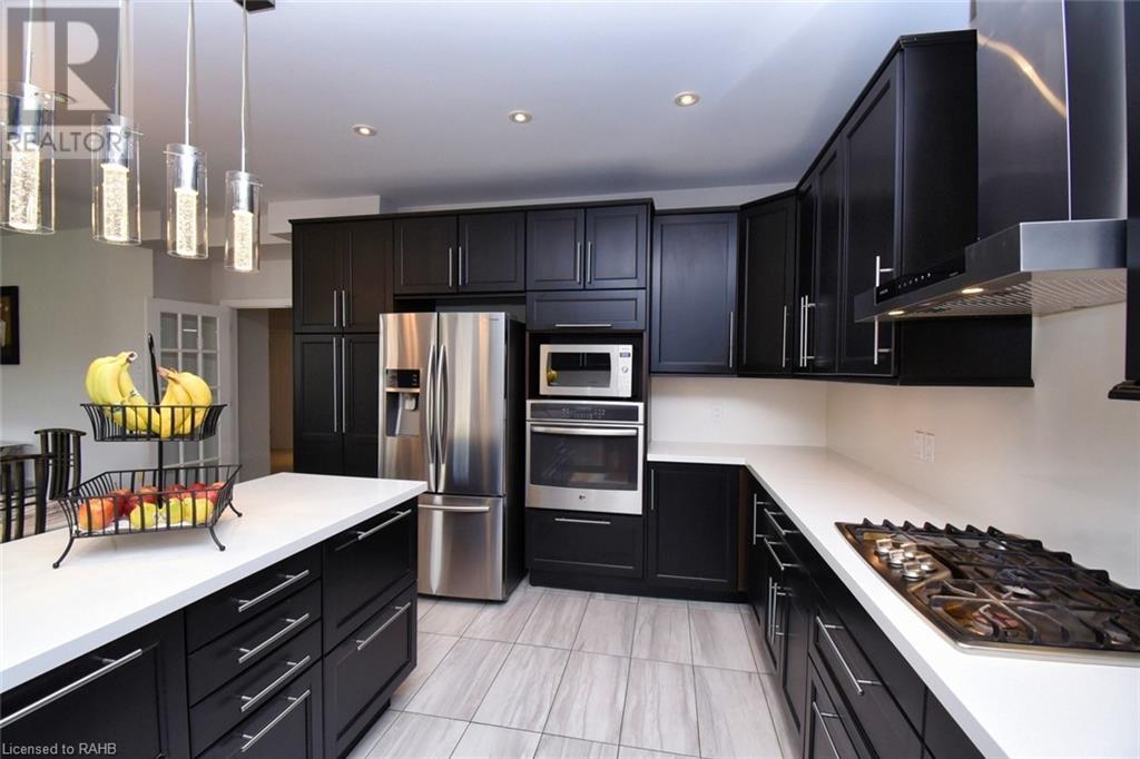 Step into the epitome of modern living with this magnificent 3700+ sq/ft residence, offering a perfect blend of sophistication and functionality. Boasting 5 spacious bedrooms, including 2 master suites and 2 ensuites, along with a total of 6 bathrooms, this home is designed to accommodate your every need. The heart of the home is the expansive kitchen, featuring a large island, and ample storage space. Adjacent to the kitchen is a sprawling family room, ideal for family gatherings or quiet evenings by the fireplace. The fully finished basement is a true gem. Complete with an extra bedroom/gym space, a pub-style wet bar, kitchen, 3-piece bathroom, and a separate entrance from the garage, this space offers endless possibilities for relaxation and recreation. Working from home? No problem! The den on the main floor, provides the perfect setting for a home office or study area, ensuring productivity and privacy. Escape to the outdoors and unwind on the spacious 20x20 deck with a large gazebo. Whether you're hosting summer BBQs or simply enjoying your morning coffee, this outdoor oasis is sure to impress. Convenience meets luxury with a main floor laundry room, making household chores a breeze. with a separate entrance to the basement from the garage, this home offers added convenience and privacy for guests or potential rental income. Located in the Ancaster Meadowlands, a desirable neighborhood close to amenities, schools, and parks. Owner is RREA. Deposit Instructions Attached. (id:55009)
